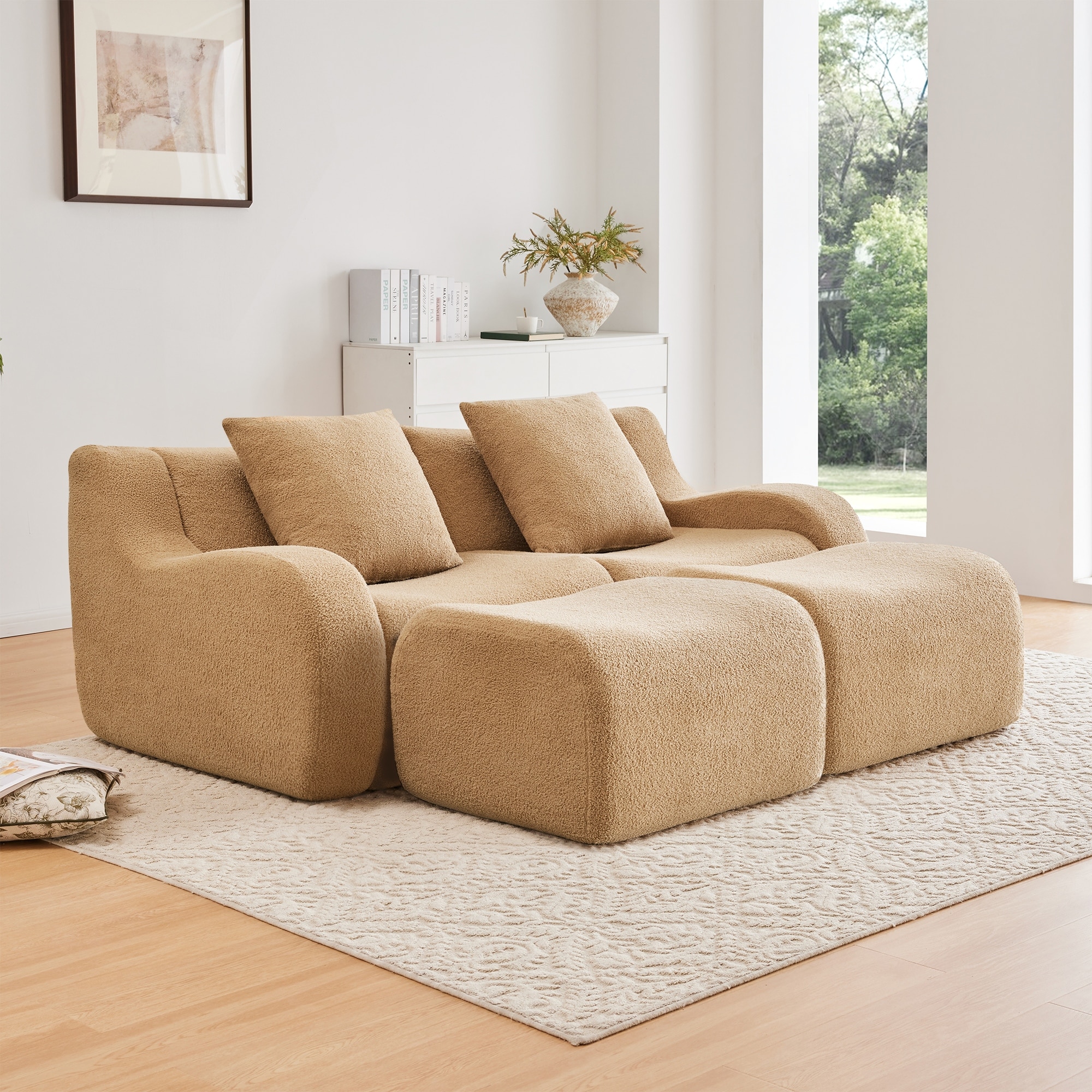 Boneless Sectional Sofa Teddy Fabric Couch ,Anti-Slip Design,32D High Density Sponge For Living Rooms Bedrooms Reading Nook
