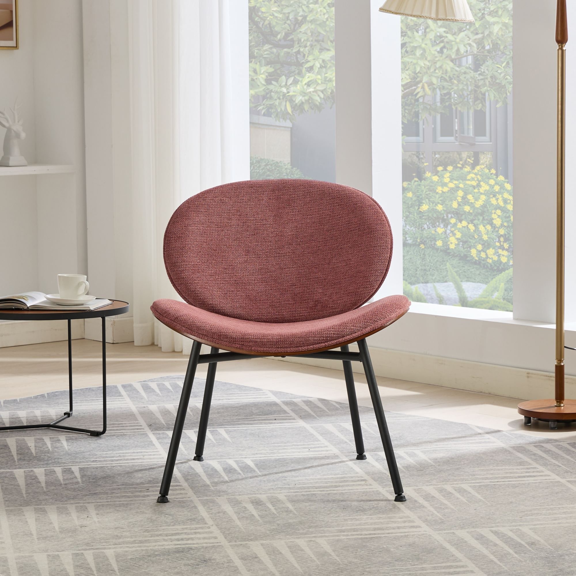 Roomfitters Mid-Century Modern Shell Chair, PU Leather Accent Lounge Chair with Walnut Wood Finish and Metal Legs