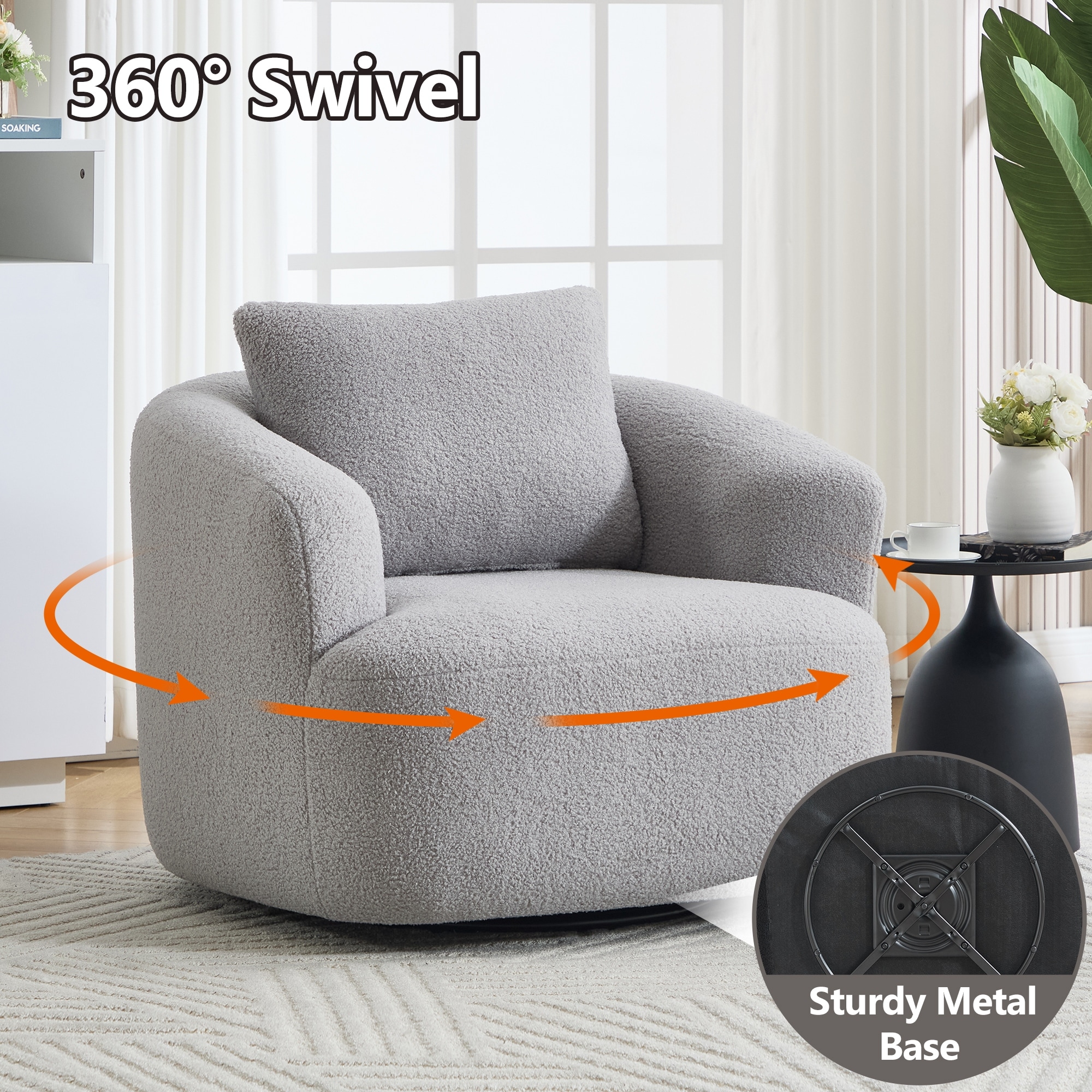 Swivel Round Sofa Chaise, Upholstered Sofa Chair with One Soft Pillow, Single Sofa with Adjustable Pillow
