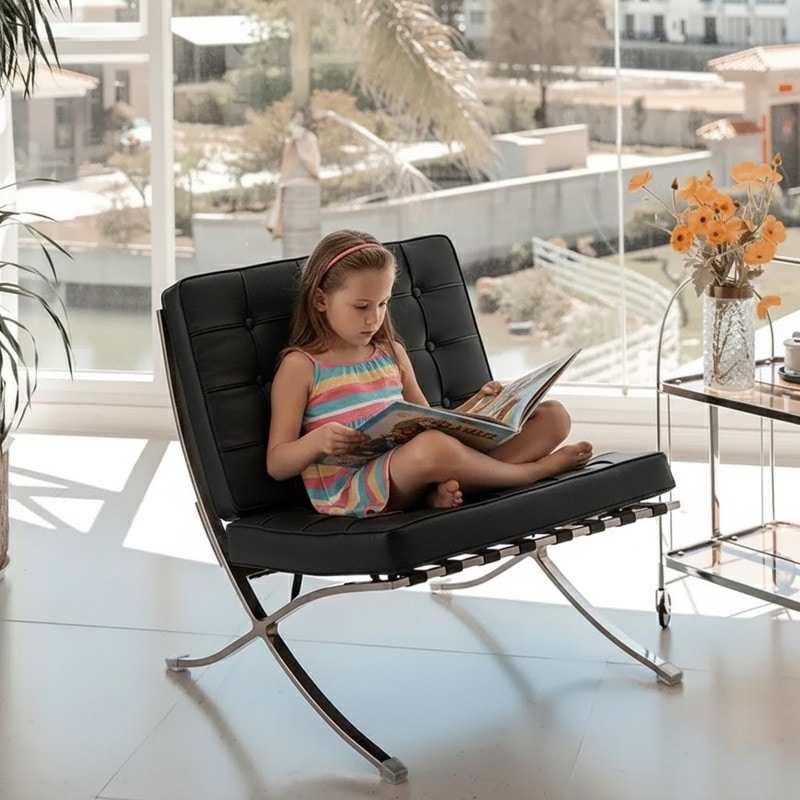 Mid-Century Modern Tufted Lounge Chair - Eco-Friendly Top-Grain Leather, Foldable Space-Saving