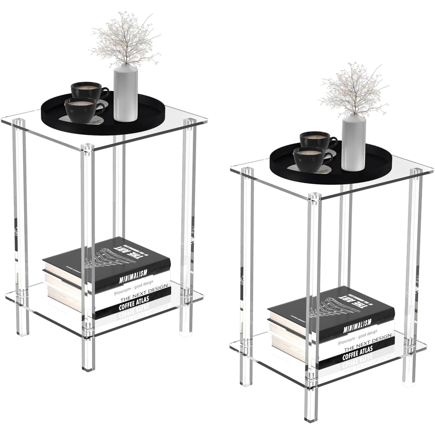 Set of 2 Acrylic Side Tables - Modern 2-Tier Nightstand for Living Room, Bedroom