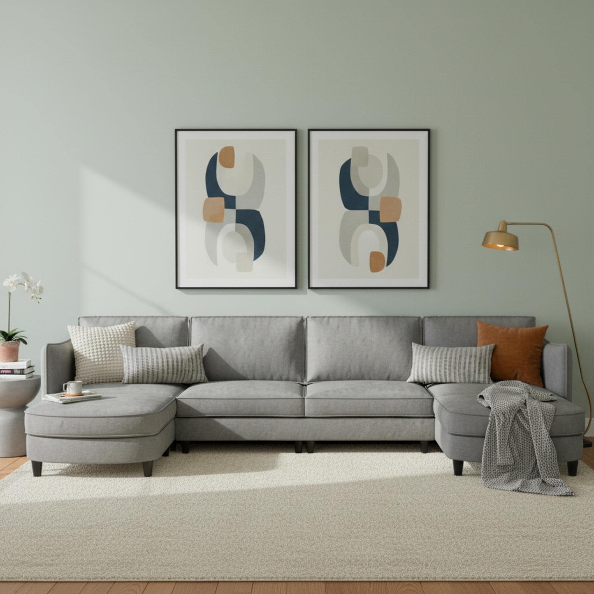 Homy Casa 6-Seater Fabric Sectional Sofa with Reversible Ottoman, Solid Wood Frame and Side Pocket for Living Room