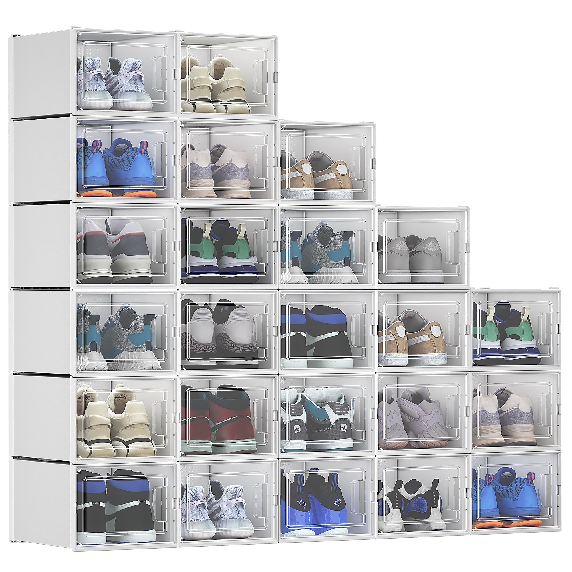 Moasis XL 24 Pack Shoe Storage Boxes Clear Plastic Stackable Shoe Organizer