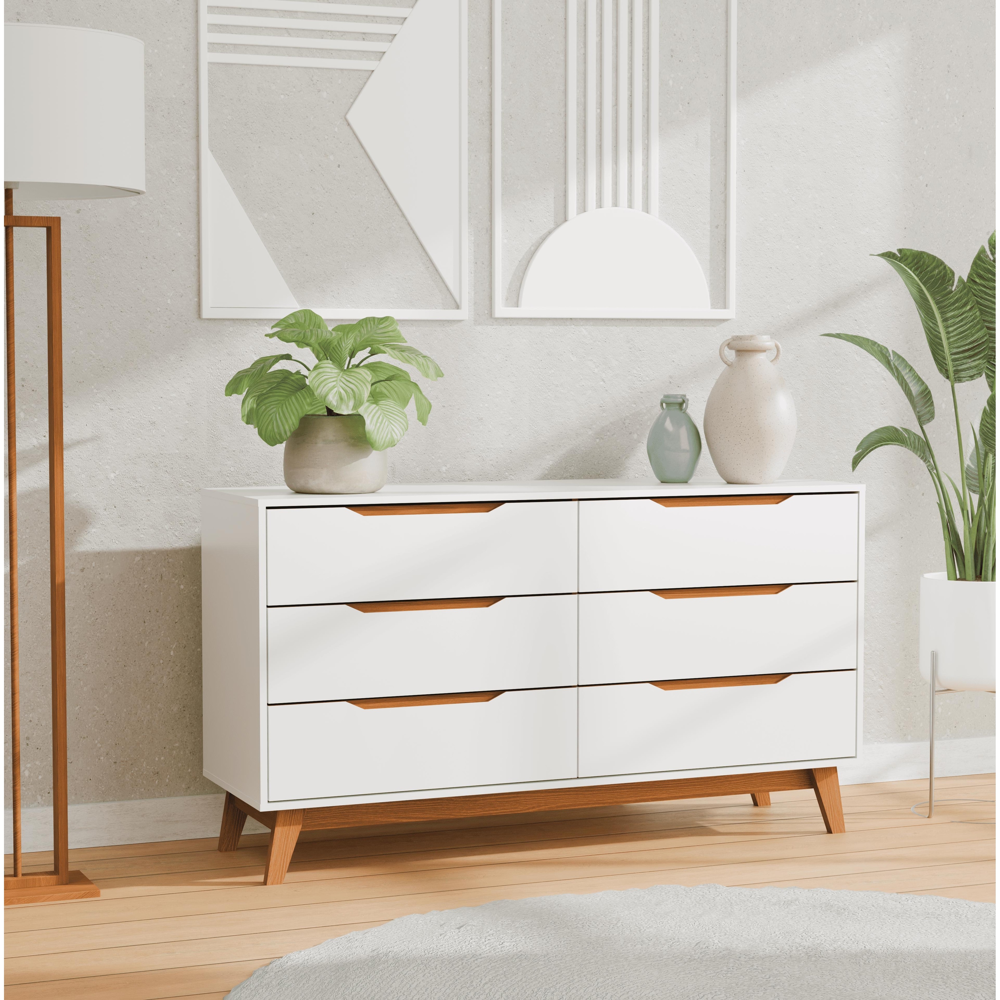 Kappesberg Rio 6-Drawer Dresser with Built-In Handles, Telescopic Slides, and Wood Base