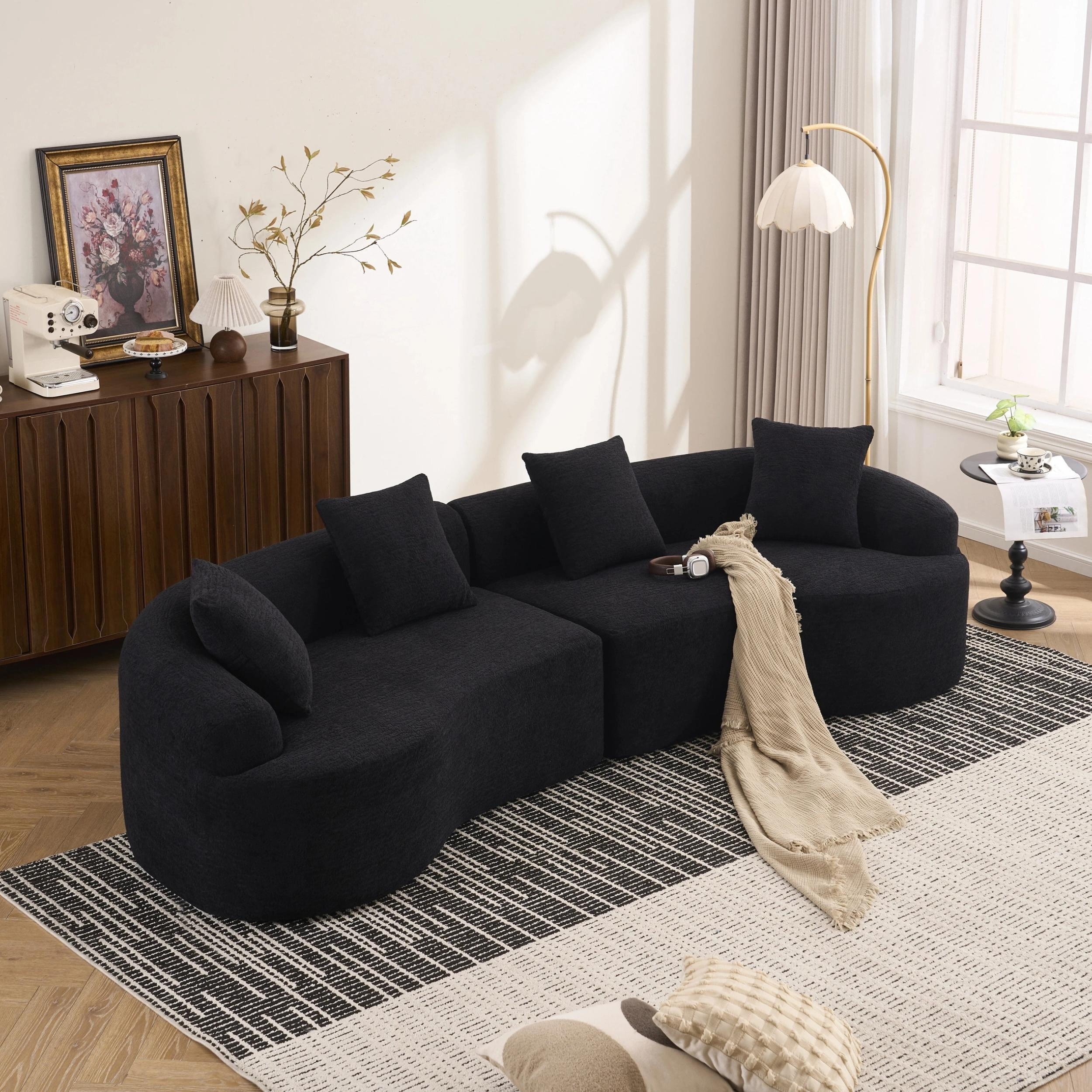 Full Compression Sponge Sofa Black Curved Modular Sectional, 30D High-Density Chenille Sleeper Couch, 1200 lbs 110"L