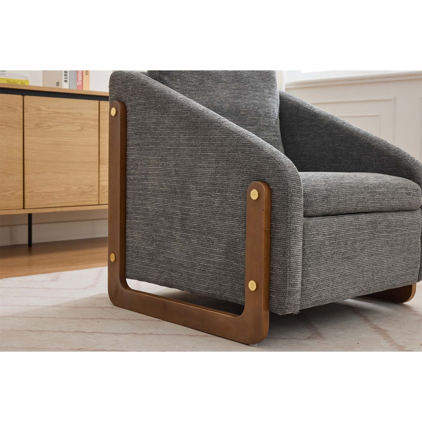 Chenille Fabric Modern Upholstered Armchair with Wooden Side Frame, Comfortable Accent Chair for Living Room and Bedroom