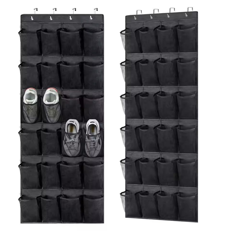 Over The Door Shoe Rack With 24 Mesh Pockets Hanging Closet Organizer Holder black