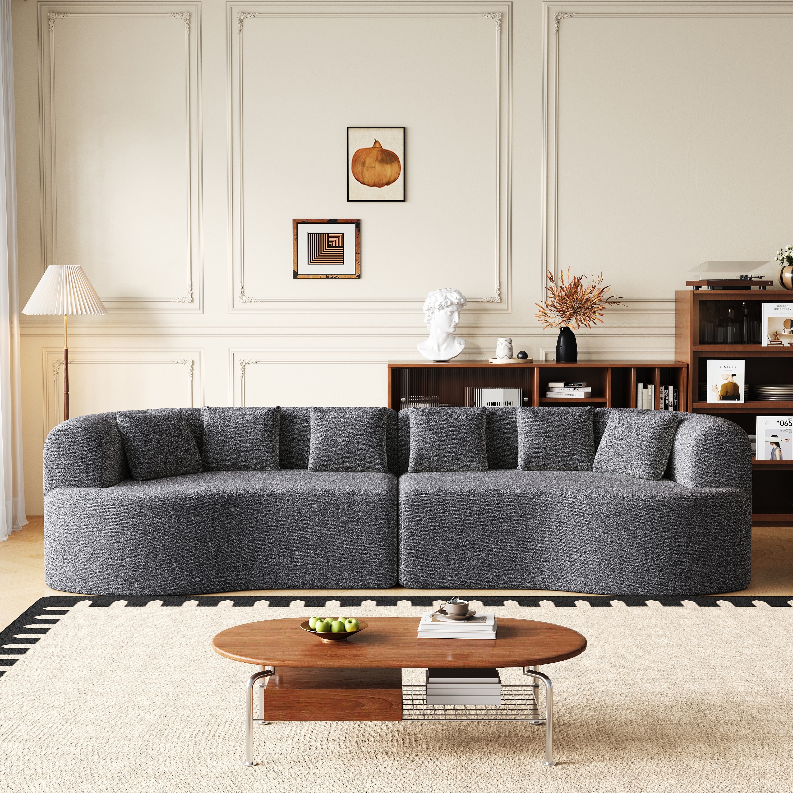 Chenille Deep Seat Curved Sectional Sofa, Modern Cloud-Like Modular Couch with 6 Throw Pillows for Living Room
