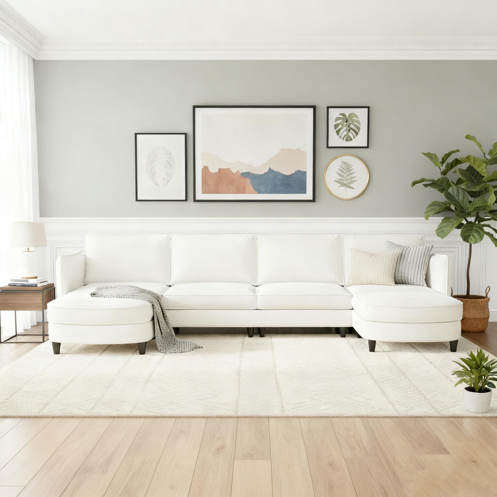 Modern 4-Seater Curved Sectional Sofa with 4 Plush Pillows for Living Room Bedroom