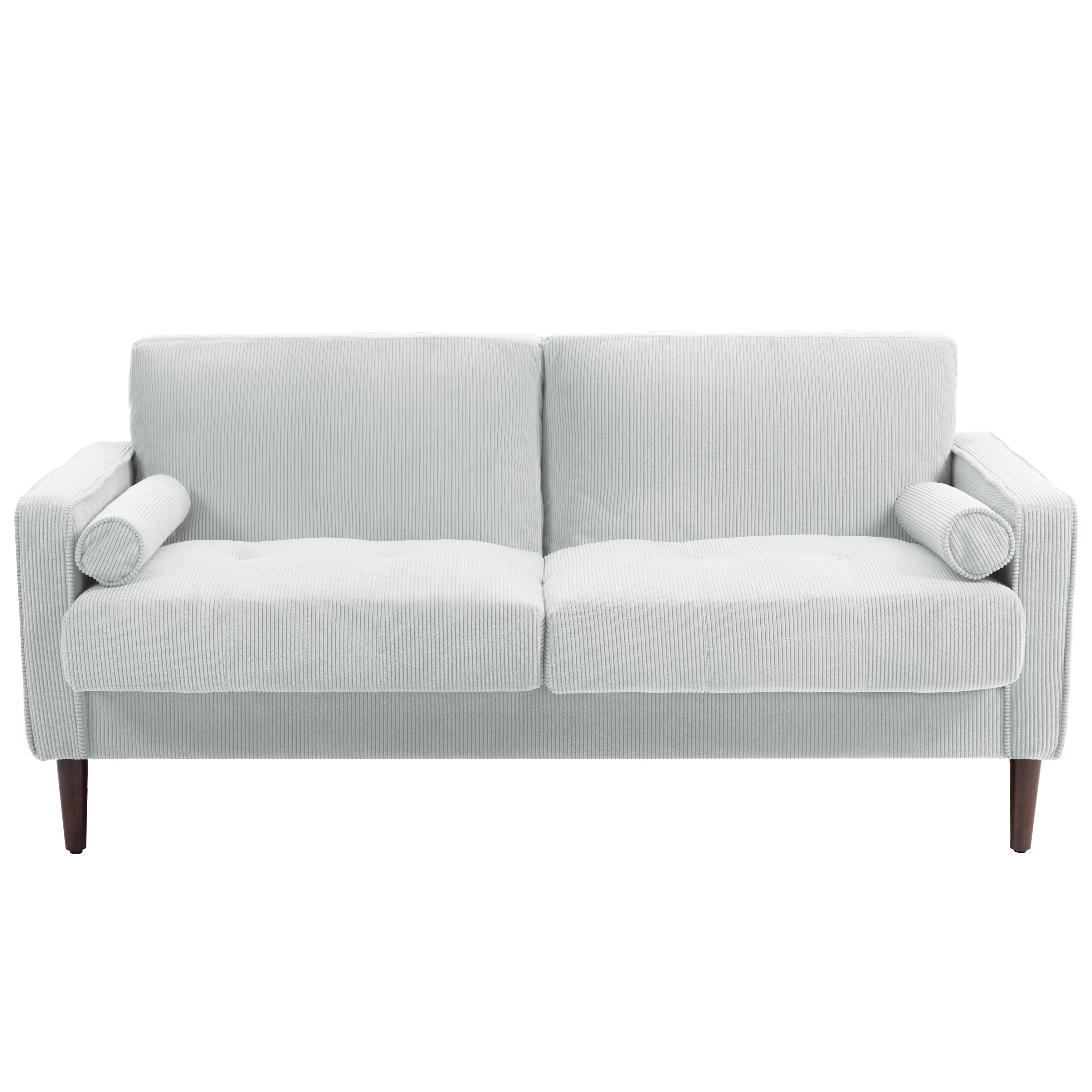 Modern Corduroy 2 Seater Sofa with Bolster Pillows