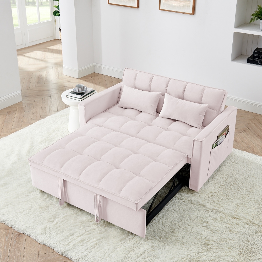 54.33 inch Velvet Pull-out Sofa Bed with Adjustable Back