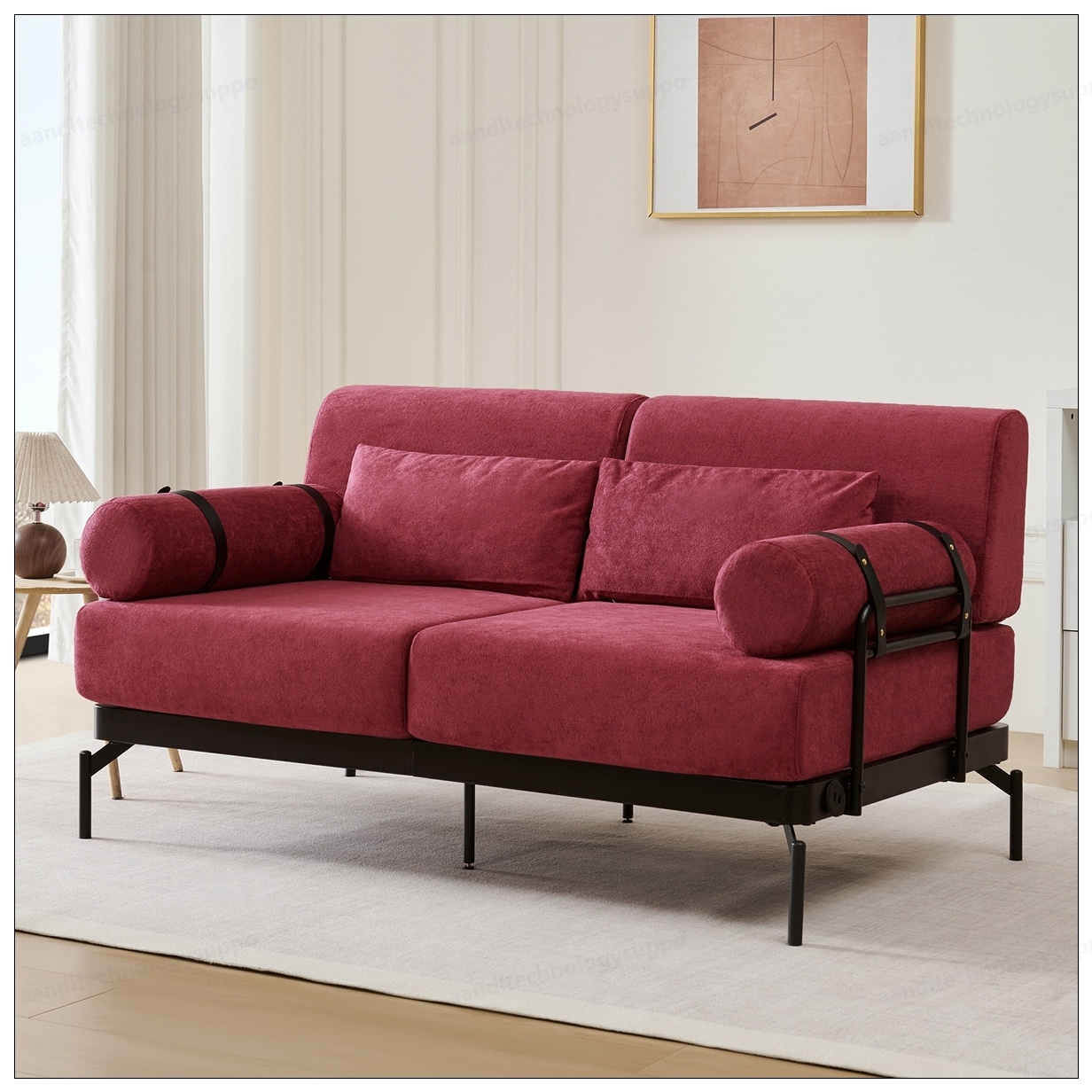Modern Minimalist Compressed Upholstered Convertible Two-Seater Sofa Bed with External Metal Frame