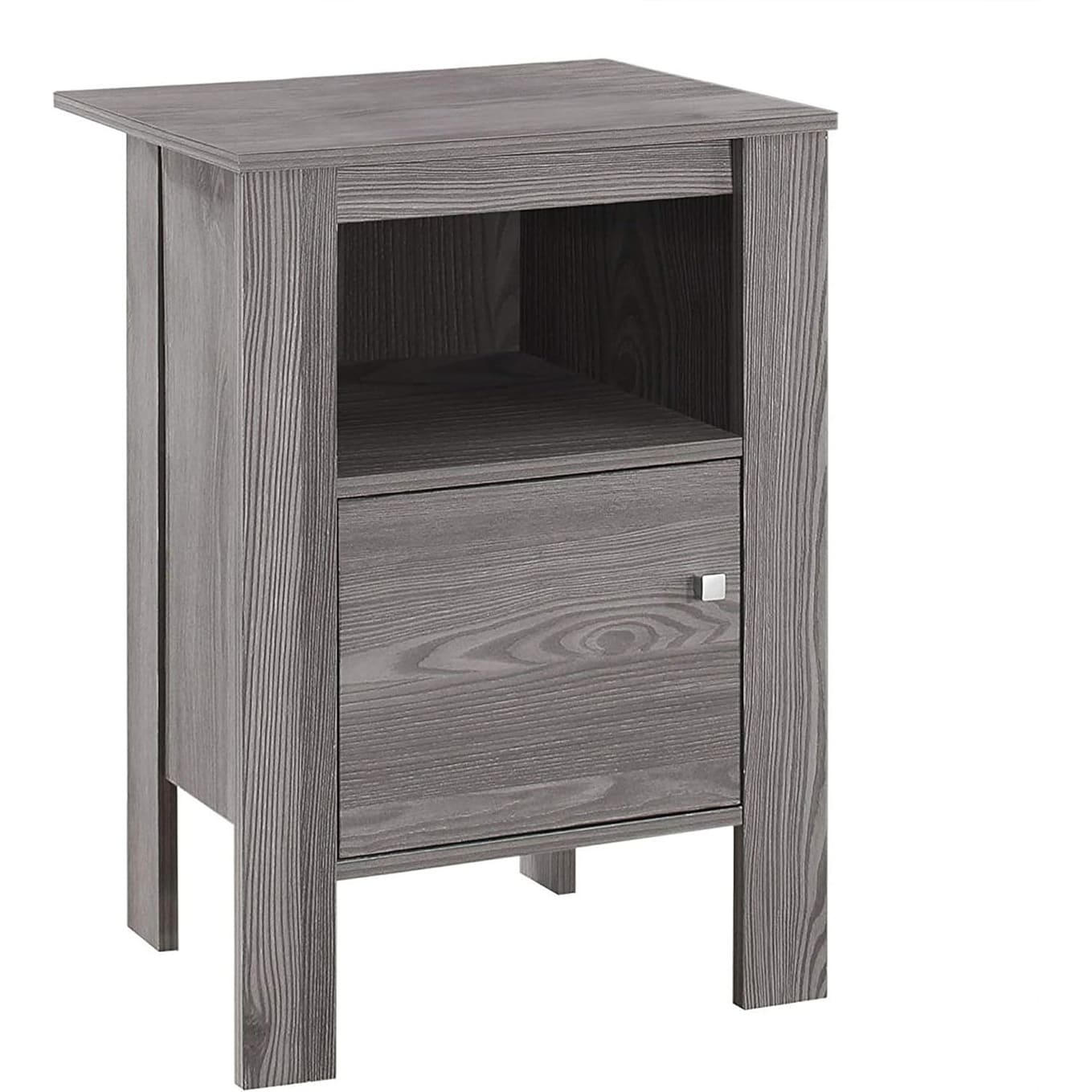 Grey Night Stand with Storage, 17.25L x 14D x 24.25H, Open Shelf and Closed Cabinet