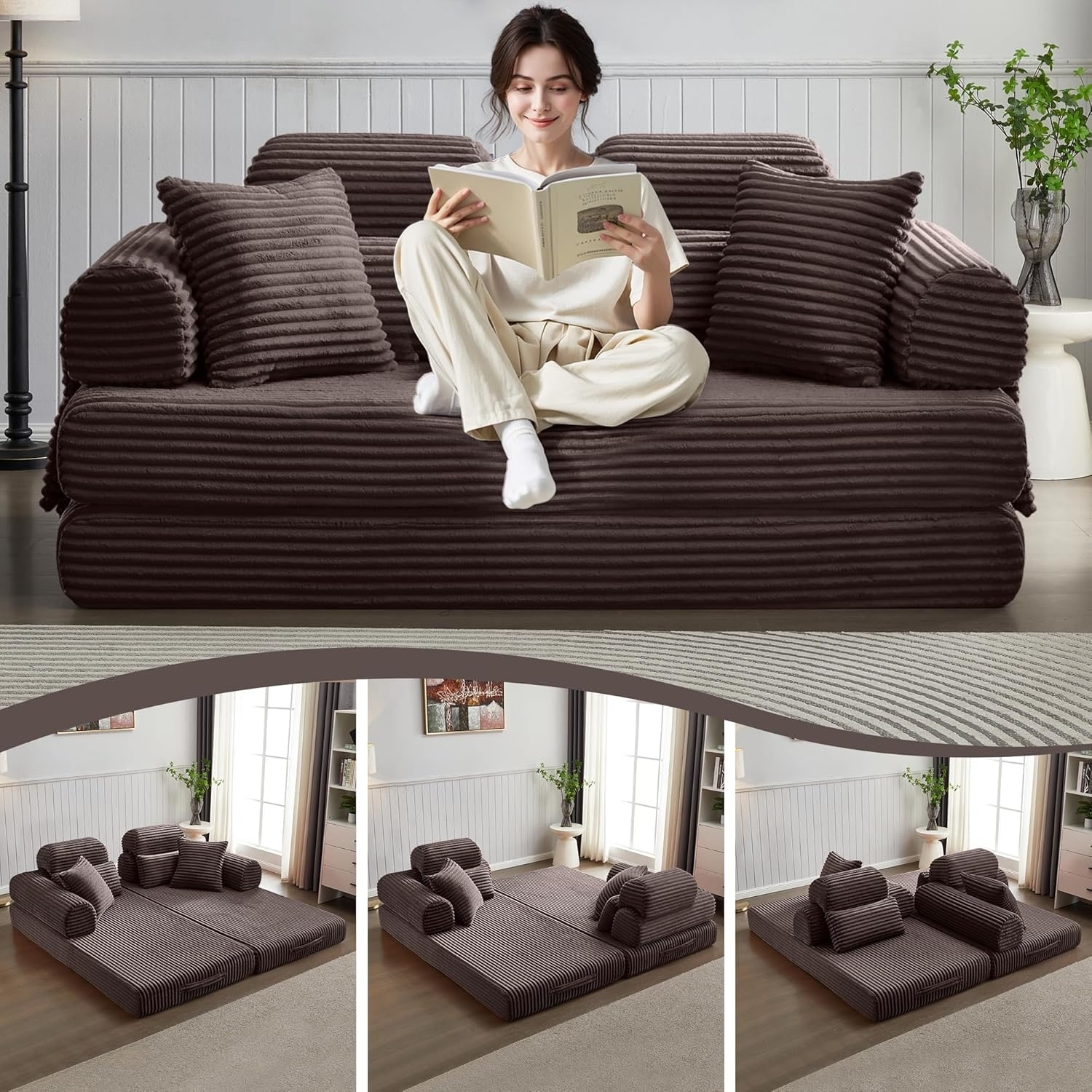 Convertible Sleeper Sofa Bed, 78.5" Corduroy Foldable Loveseat Sofa, King Size Floor Mattress Couch, No Assembly Required