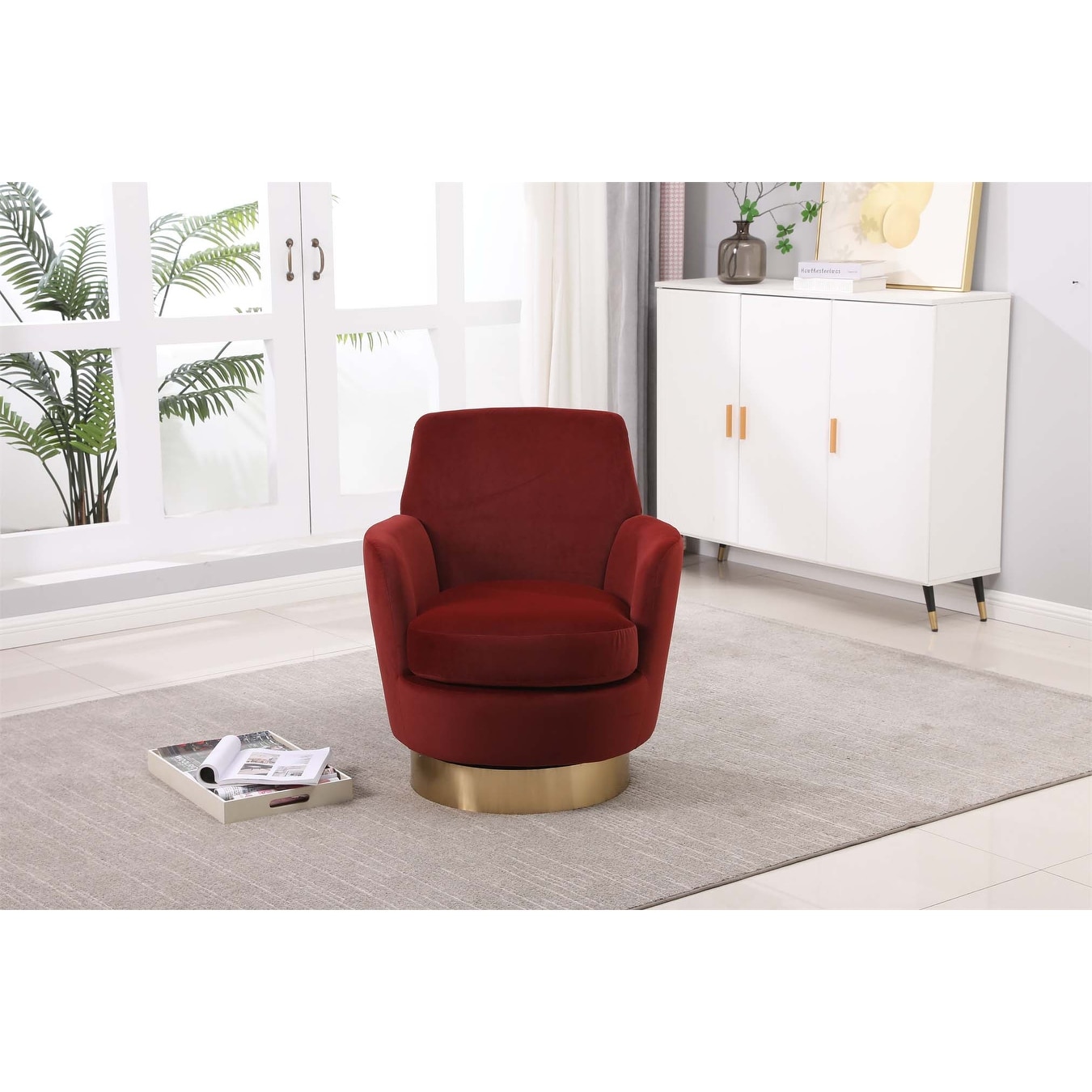 Velvet Swivel Barrel Chair with Gold Stainless Steel Base, Perfect for Comfort and Style in Living Rooms and Bedrooms.
