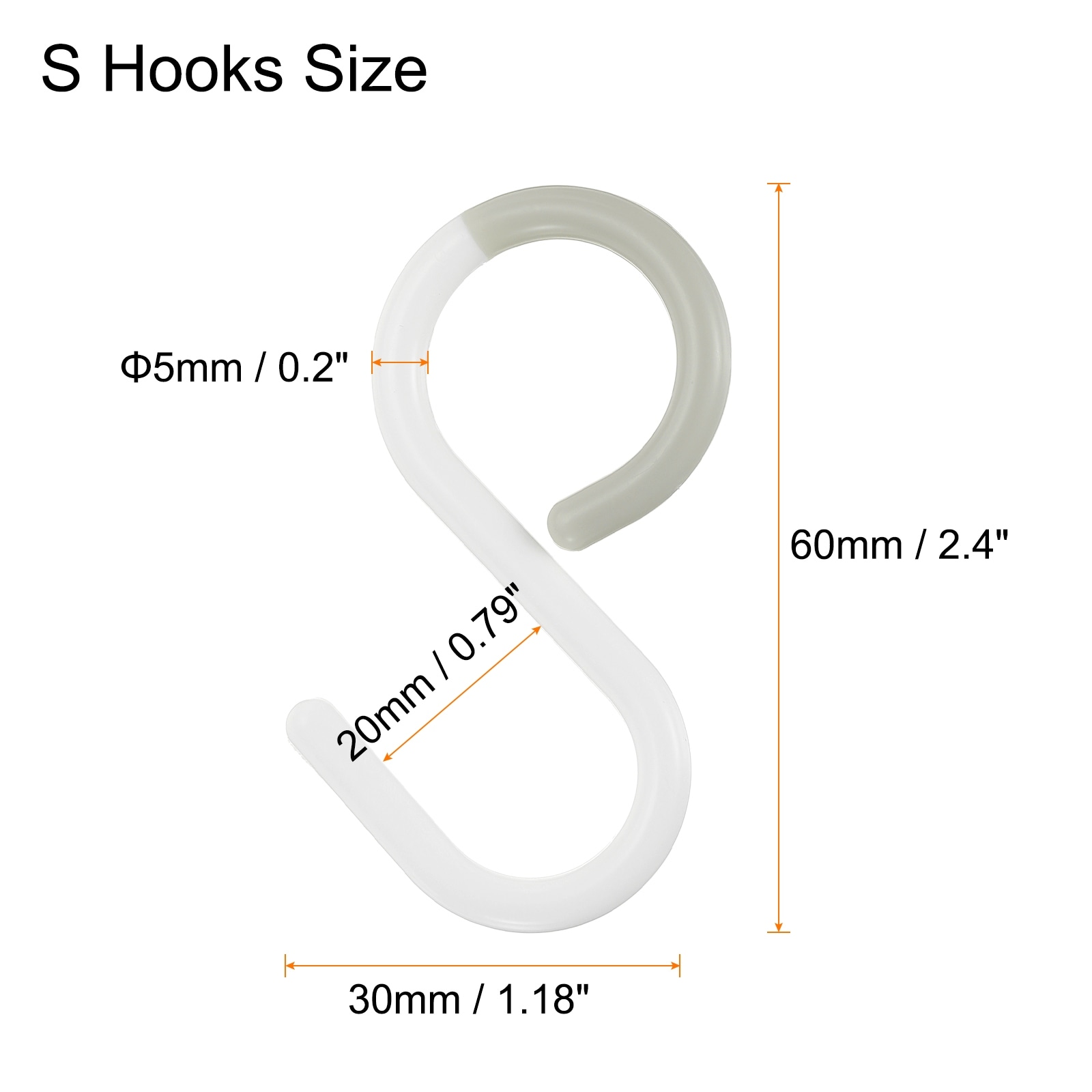 6pcs S Hooks 2.4" Plastic Hanging S Shaped Hooks Small Closet Rod Hooks, White