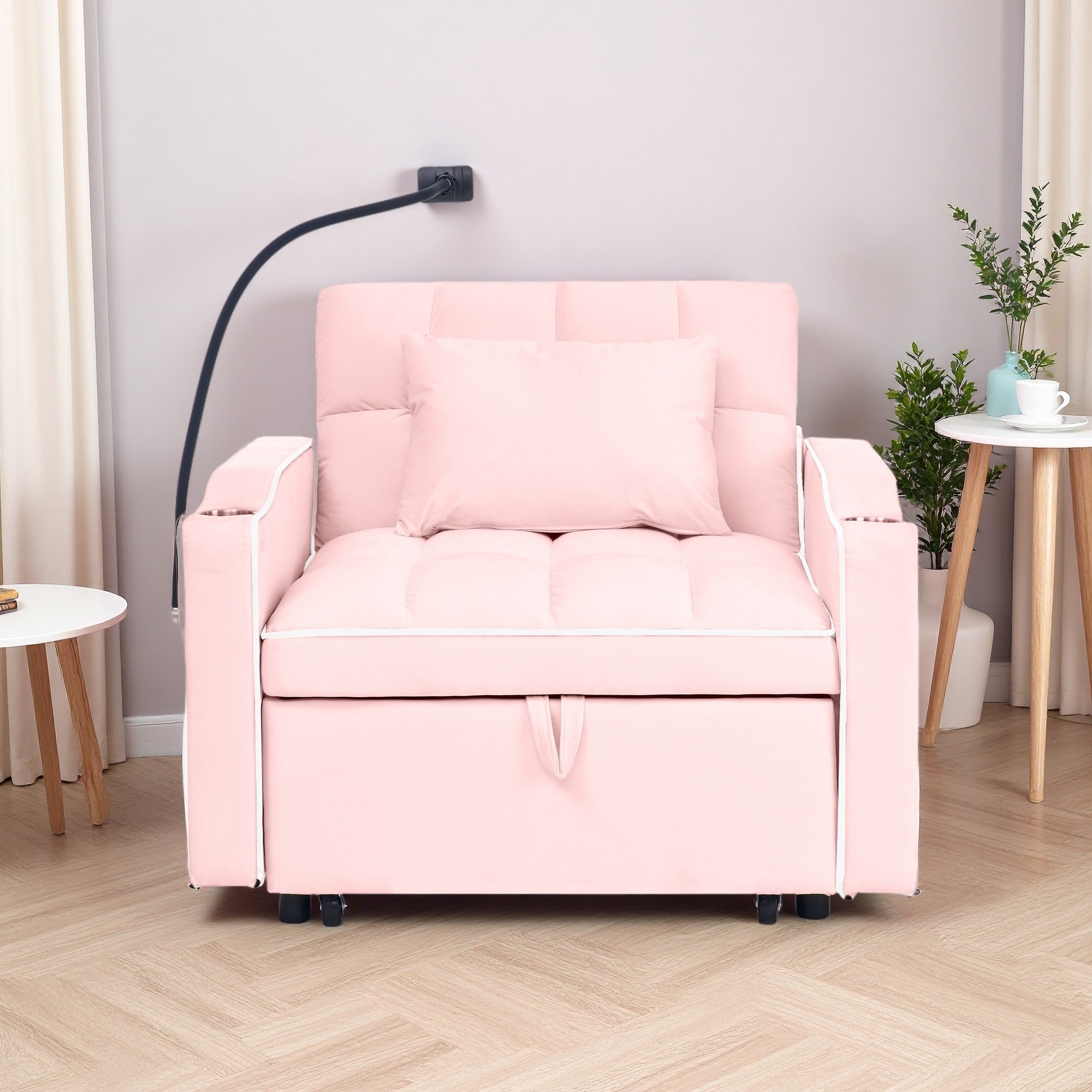 Convertible Sleeper Chair Bed with Pull-Out Design, Multi-Pockets, USB Port & 3-in-1 Function for Living Room