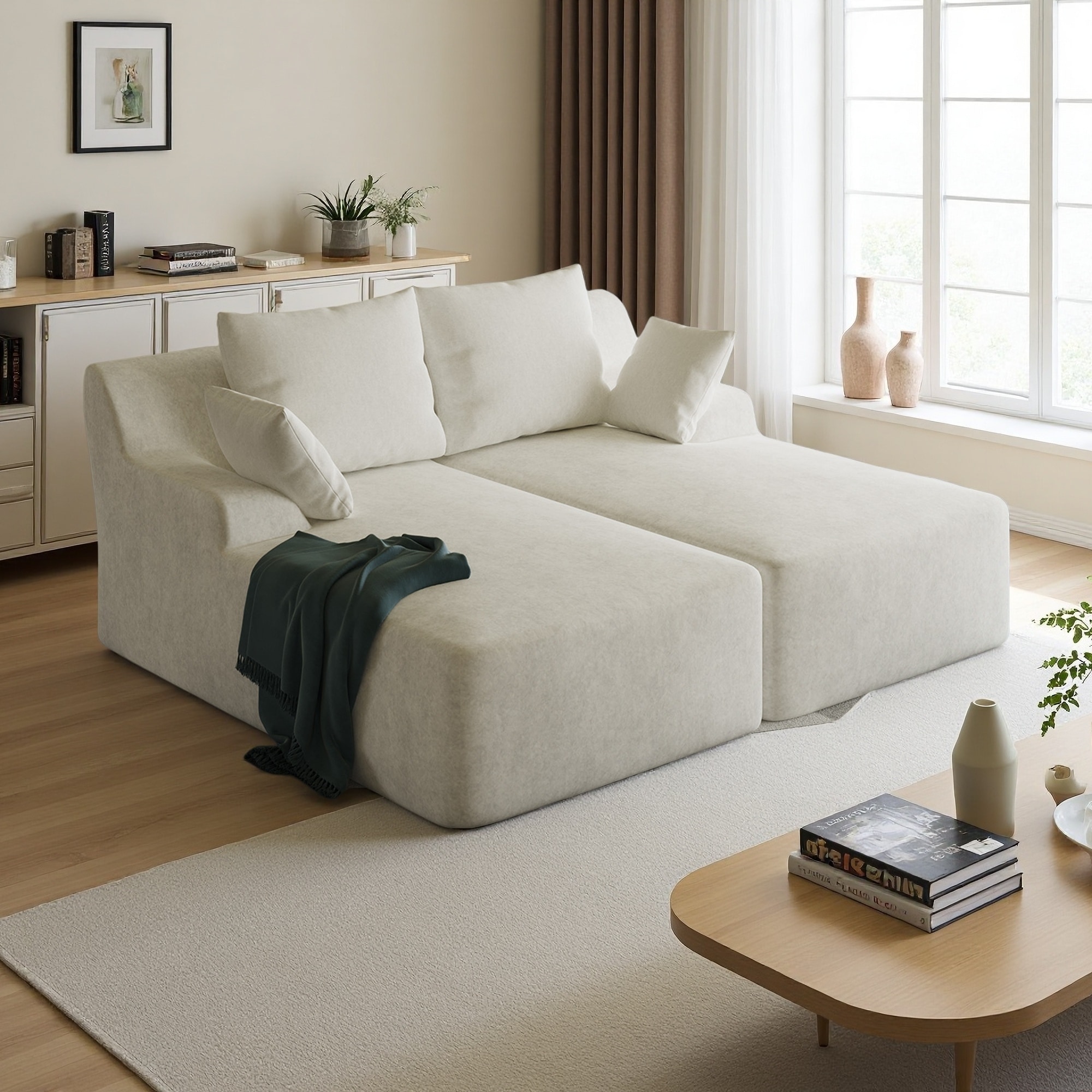 78" Velvet Dual Chaise 2-Seat Sectional Sofa with Sleeper Function and No Assembly Required