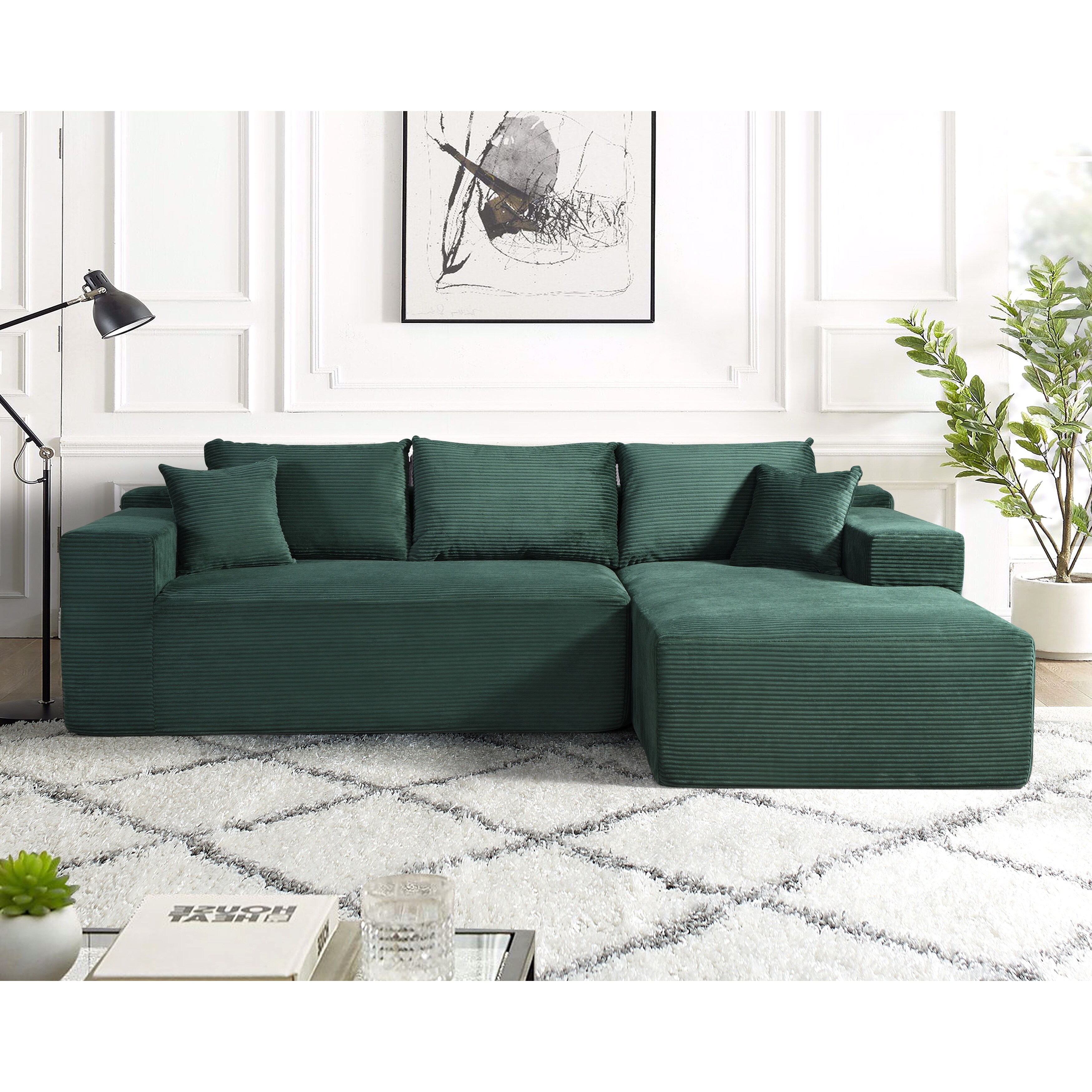 2-Piece Convertible Corduroy L-Shaped Sofa in a Box with Pillows,3-Seater Compressed Living Room Furniture