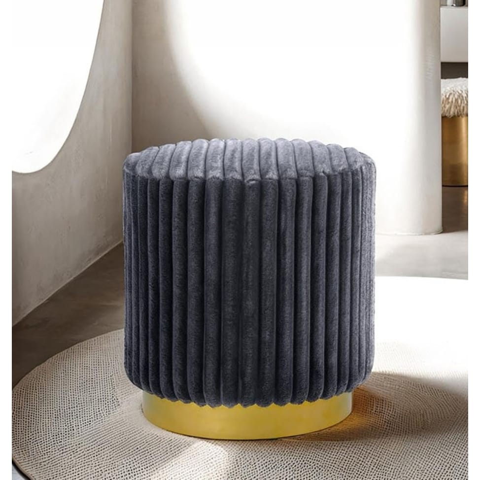 Gray Finish Contemporary Style 1pc Round Accent Stool Gold Base Stainless Steel Fur Fabric Primary Living Room