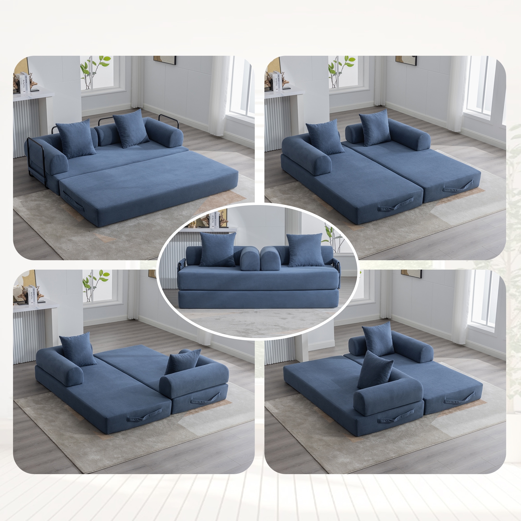 Foldable Modular Couch Sleeper Loveseat Sofa Bed with Storage Side Pocket, Detachable Metal Frame and Corduroy Fabric Cover