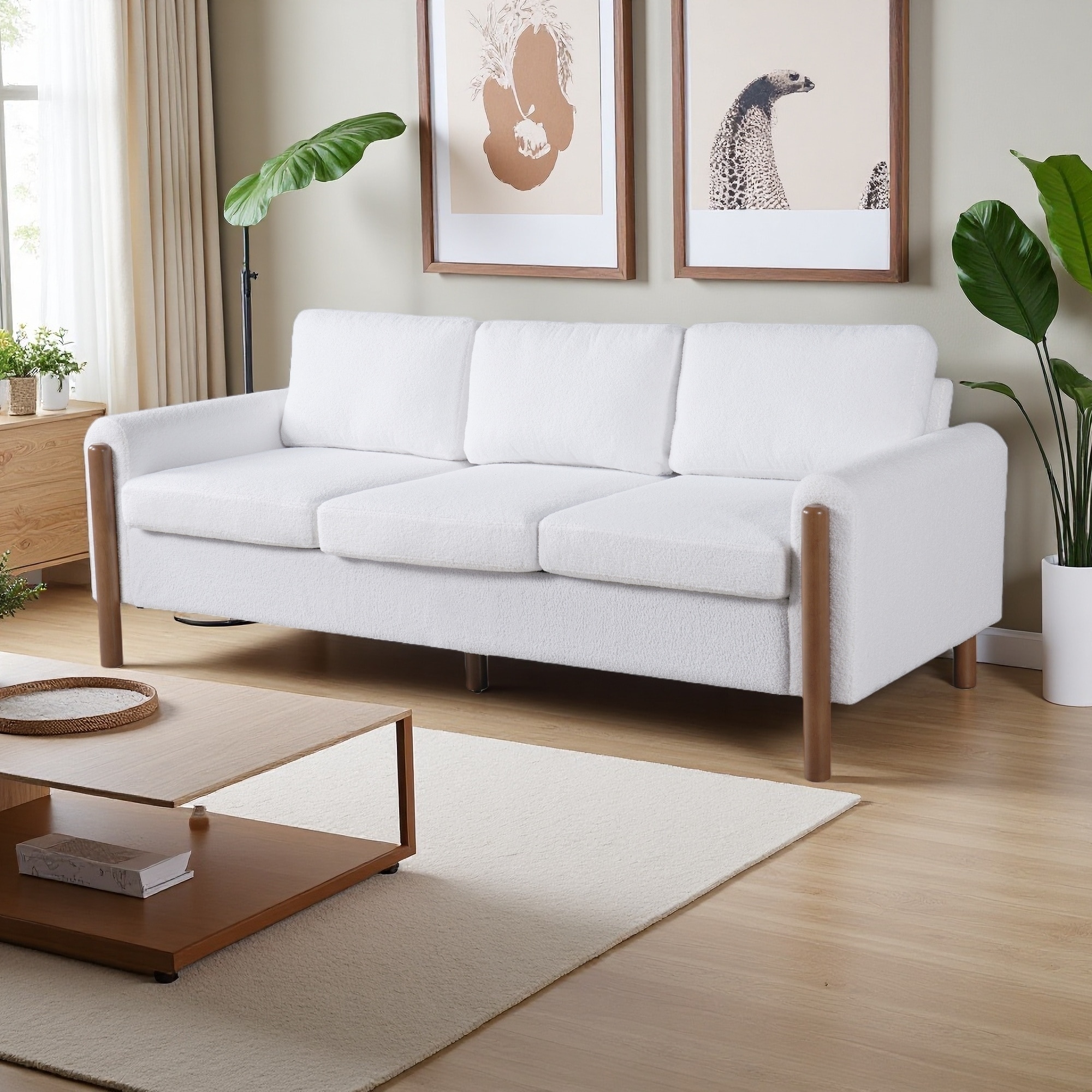 83.86" Teddy Velvet Curved Armrest 3-Seater Sofa with Solid Wood Legs and High Weight Capacity