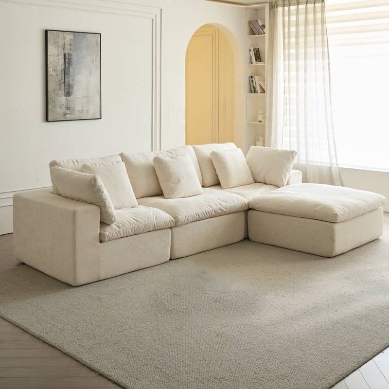 118" Cloud Corduroy Sectional Couch with L-Shape Chaise and Deep Seat, Oversized Sectional Couches w/Ottoman, for Living Room