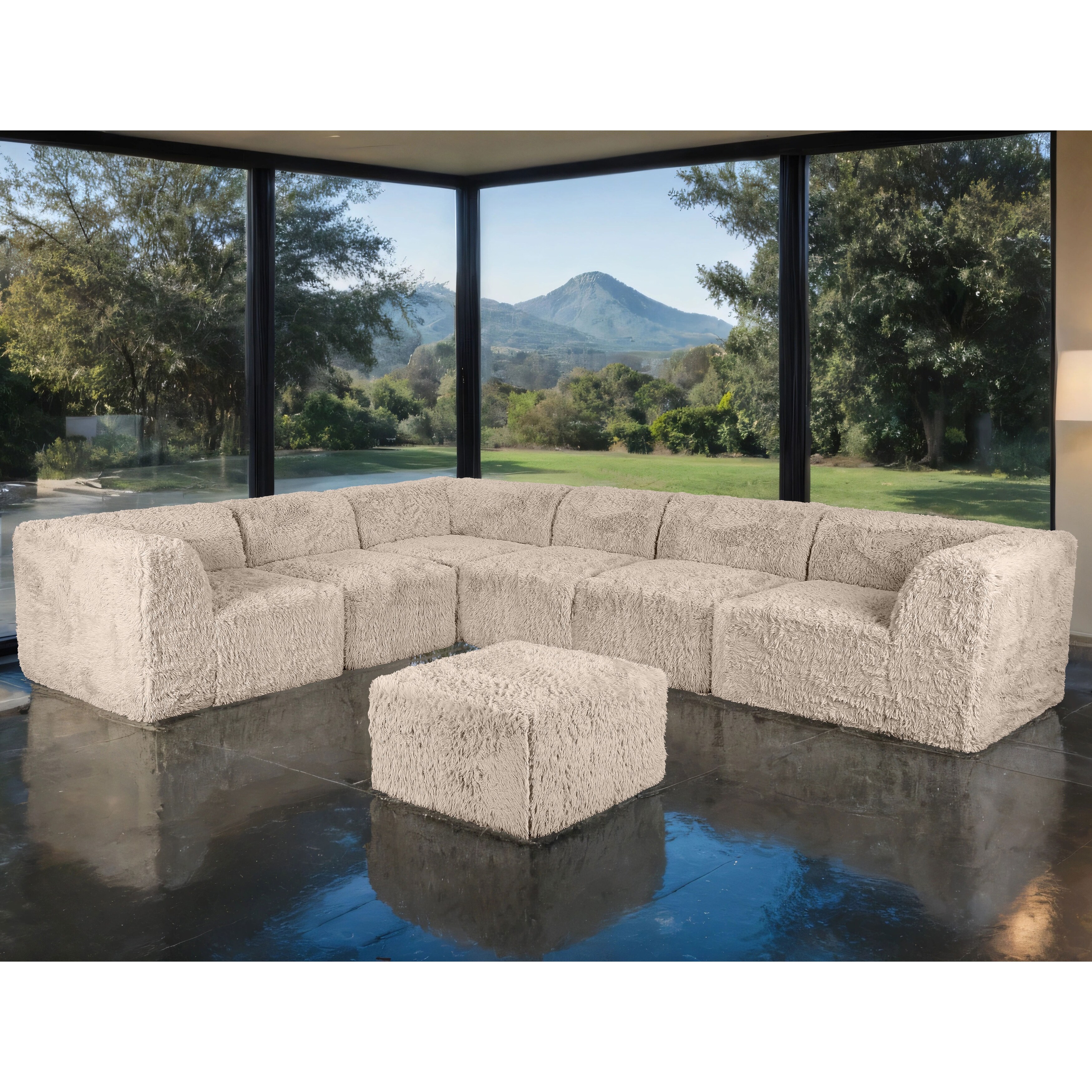 Furniture of America Ylena Modern 7-Piece Faux Fur Foam Modular Compressed Sectional Sofa with Ottoman