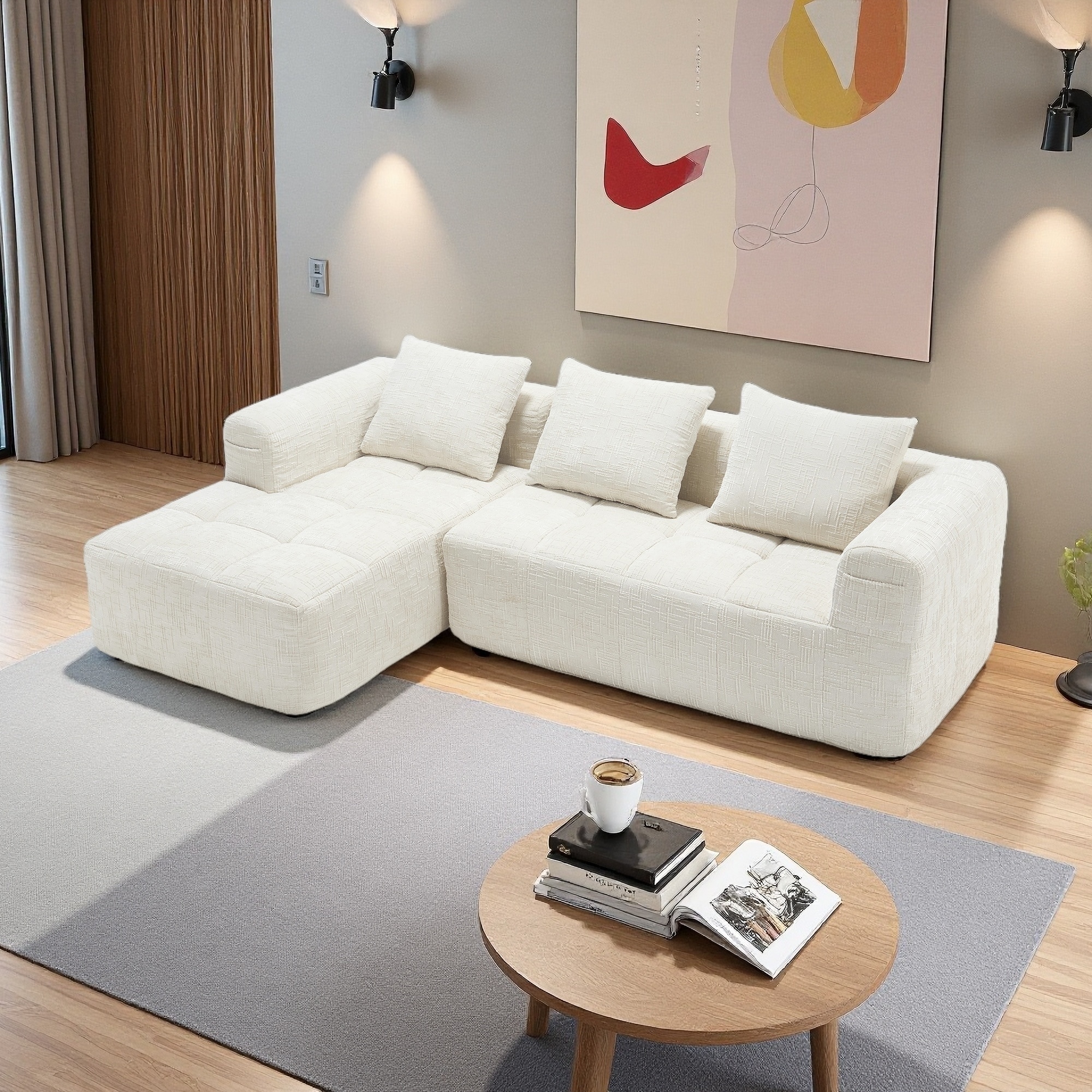 Modern L Shaped Modular Sectional Sofa with Cylindrical Cushions and Hidden Storage for Living Room or Guest Room
