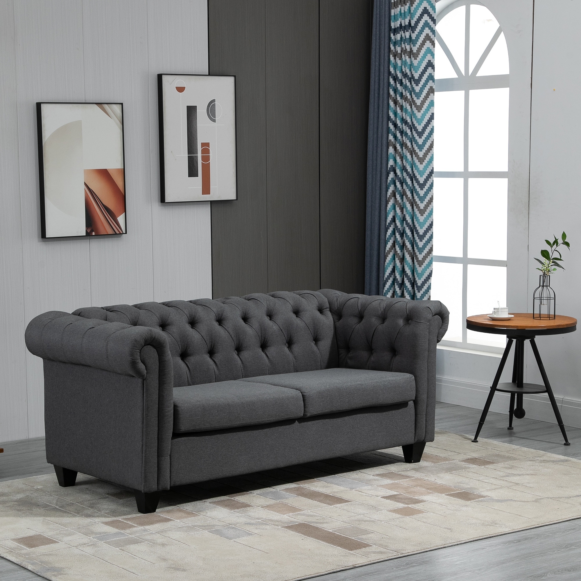 HOMCOM Retro 2-Seater Sofa Linen Fabric Couch with Rubberwood Legs, and Rolled Arms for Living Room, Grey - 32*72.75*30.75