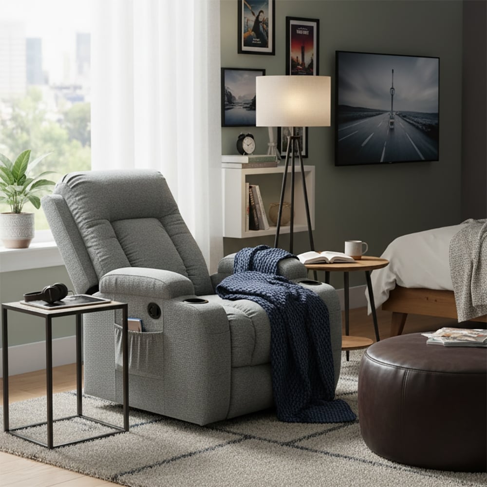 Power Upholstered Recliner Chair with Lift Base and Massage Heating Function
