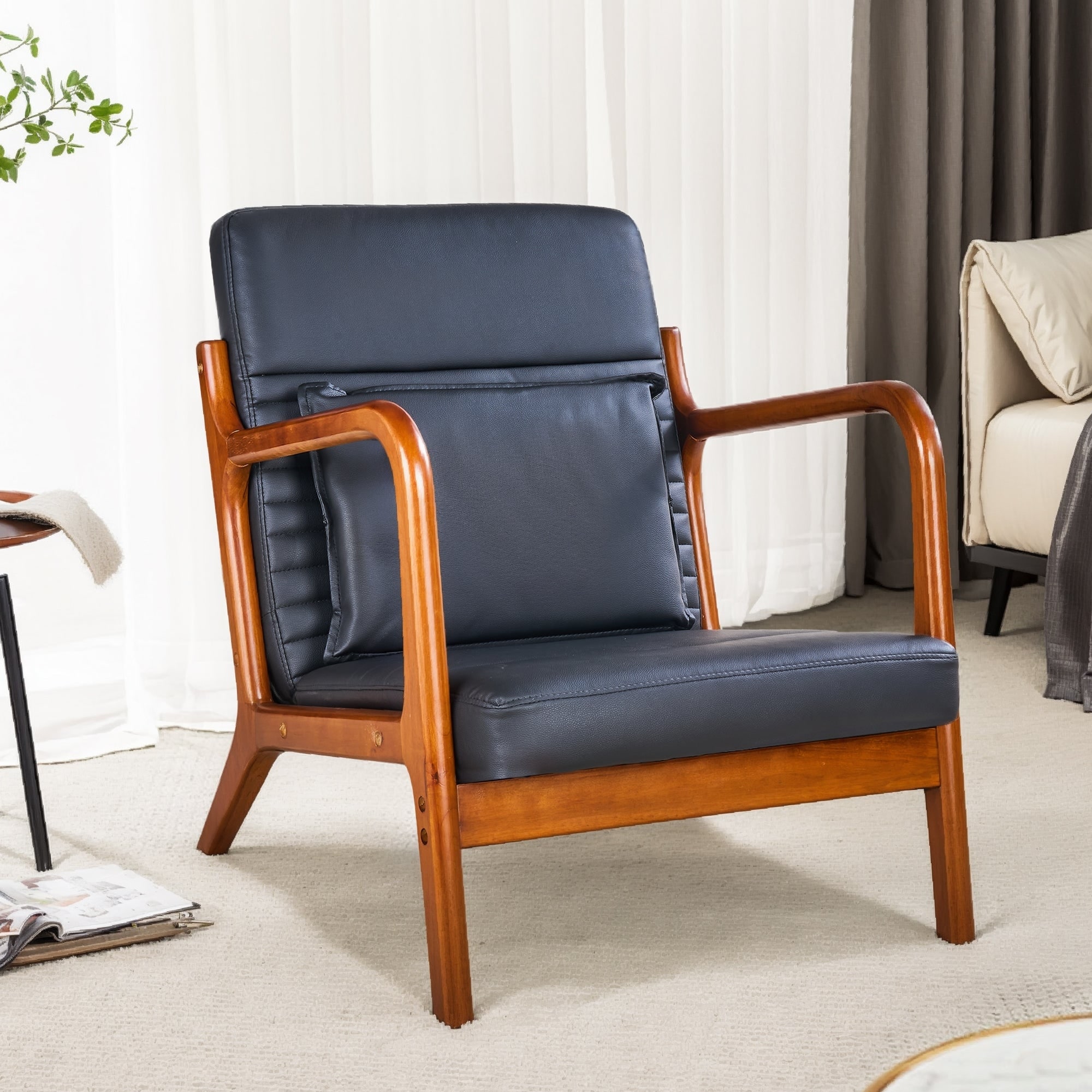 VECELO Black PU Leather Accent Chair Armrests Lounge Chair with Removable Throw Pillow 300lbs Heavy Duty Chair for Living Room