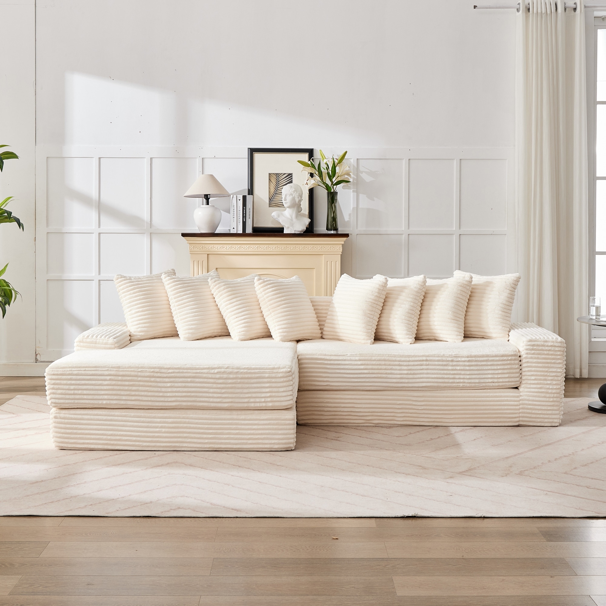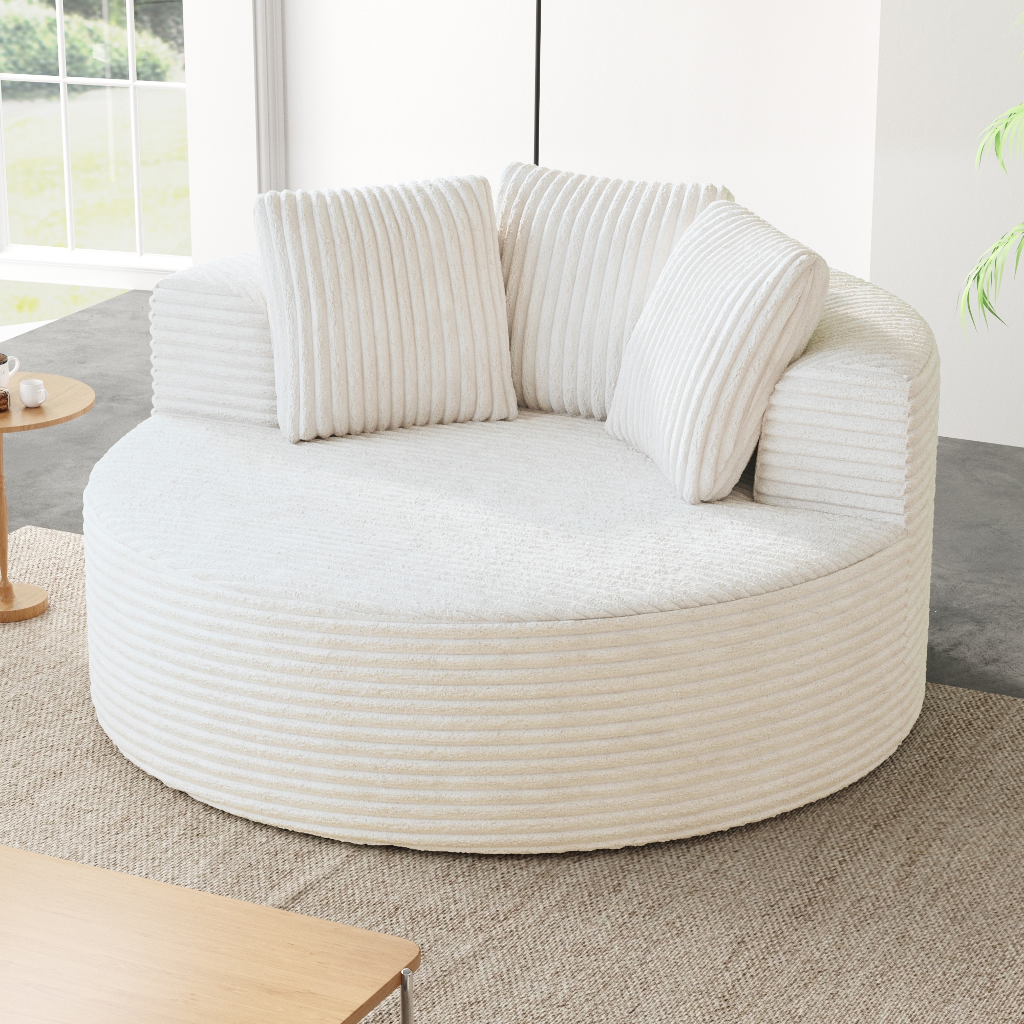 Modular Beige Round Lounge Sofa, Vertical Lines Corduroy Sofa Bed with Throw Pillow ,Modern Comfy Lazy Soft for Living Room