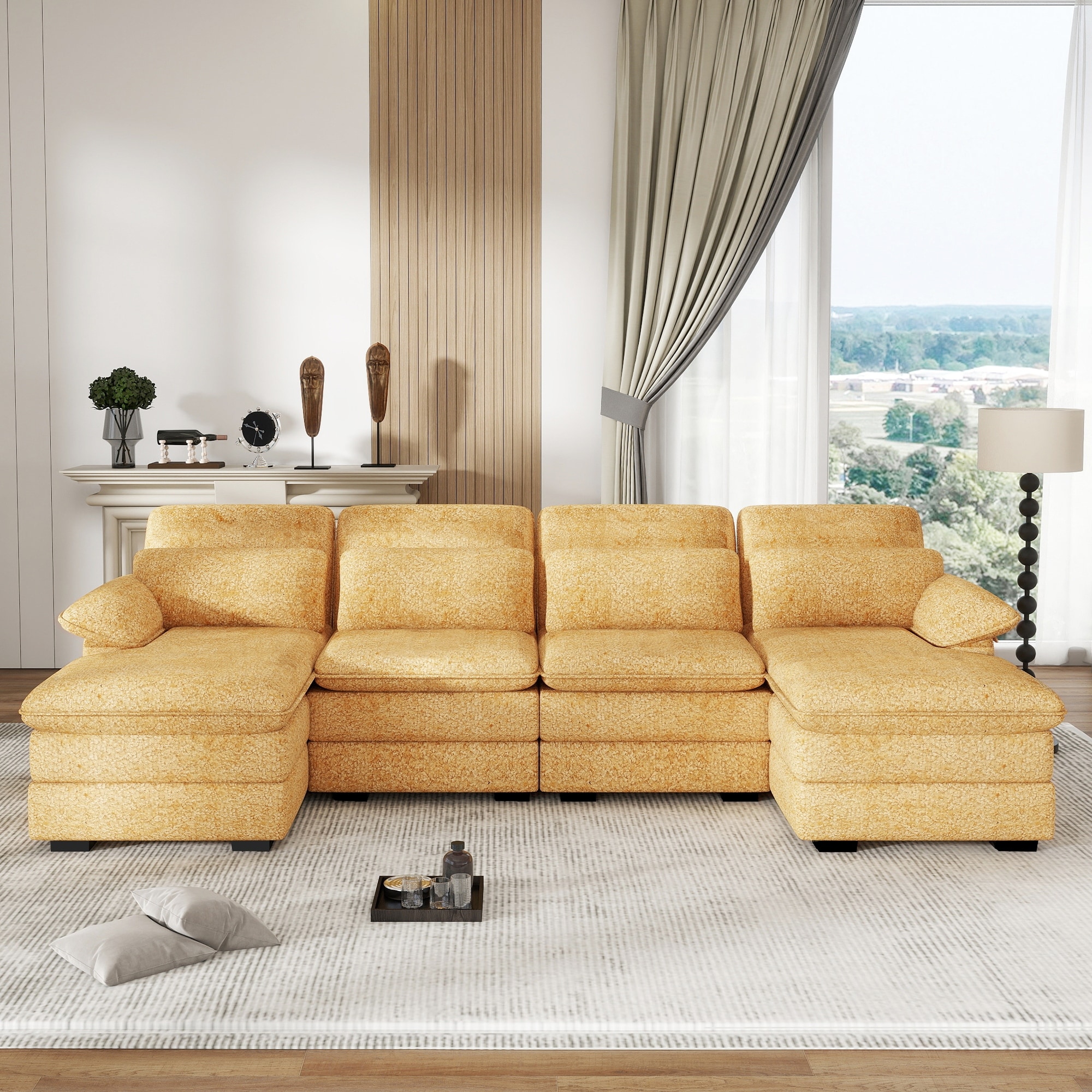 U-Shaped 111.8" Cloud Combo Sofa 4-Seater Chenille Fabric Sofa with Arms