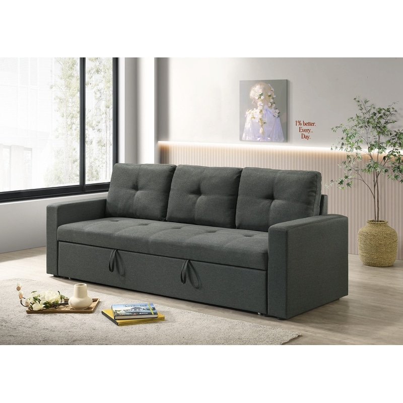 Burleigh 83.5"W Dark Gray Fabric Sleeper Sofa with Tufted Cushions