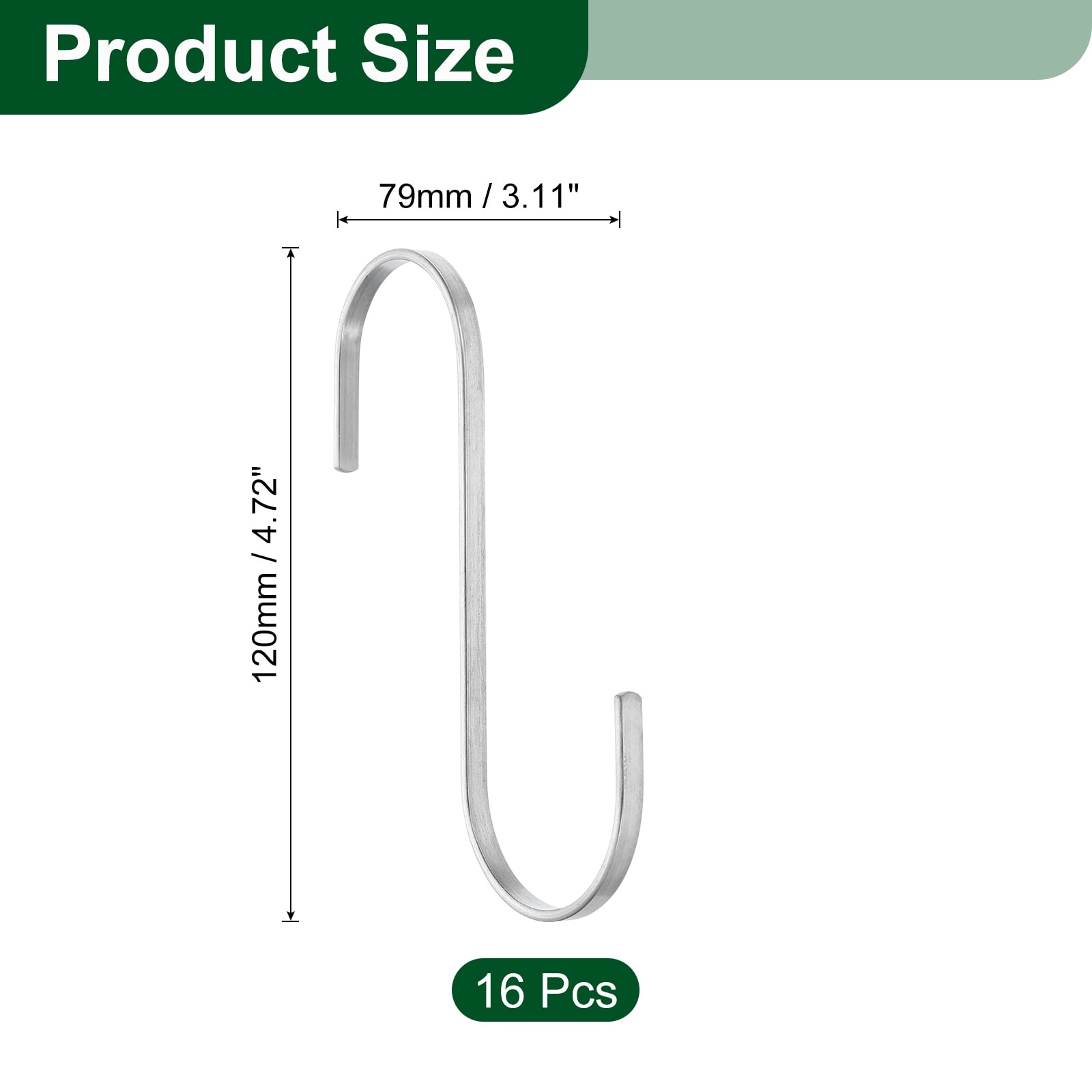Flat S Hooks, Heavy Duty Metal S Shaped Hanging Hooks for Kitchen Bathroom Bedroom Offices - Silver