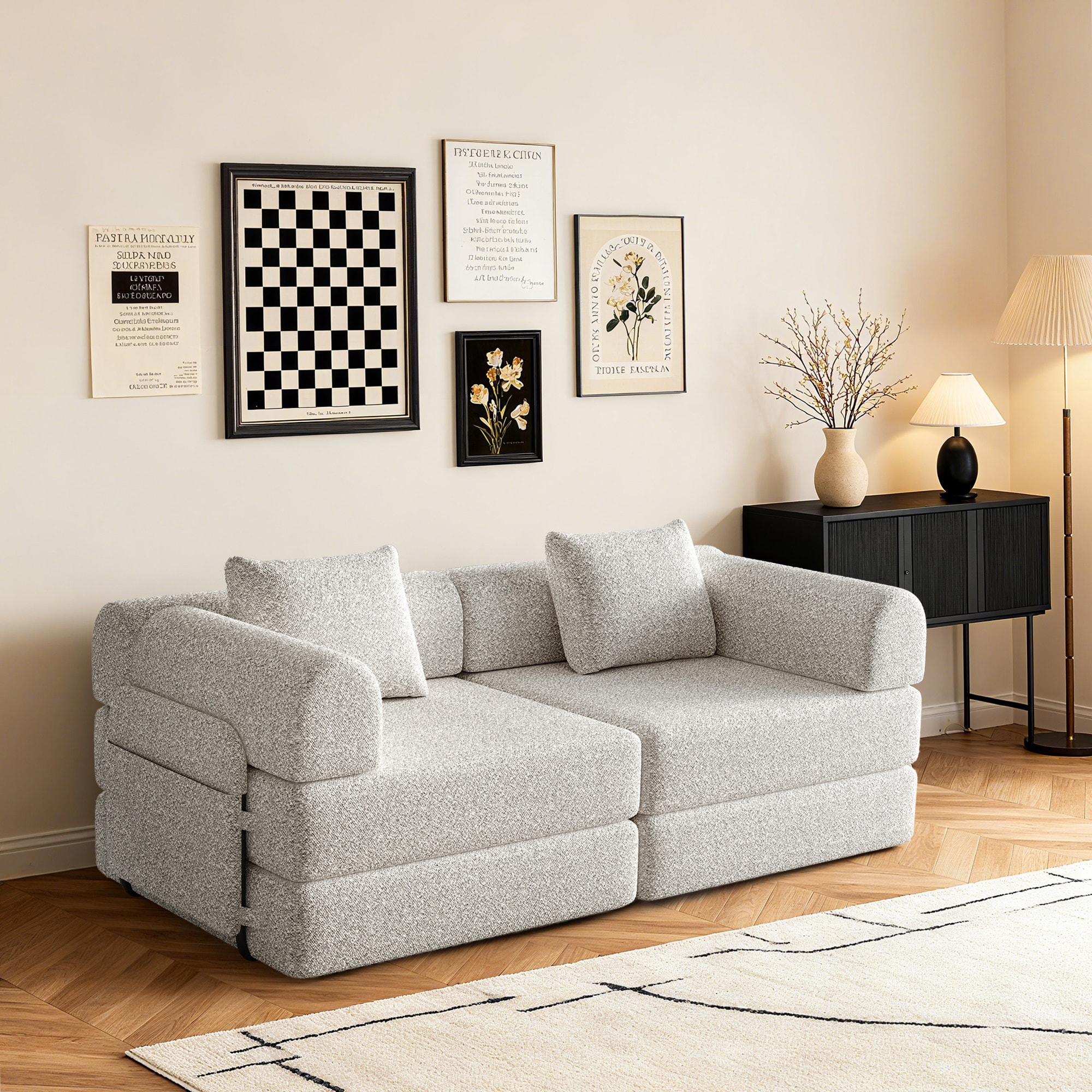 Folding Sofa Bed, 78.5" Convertible Couch Bed With 2 Pillows, Fold Out Couch, Foam Spring Floor Mattress, Futon Couch