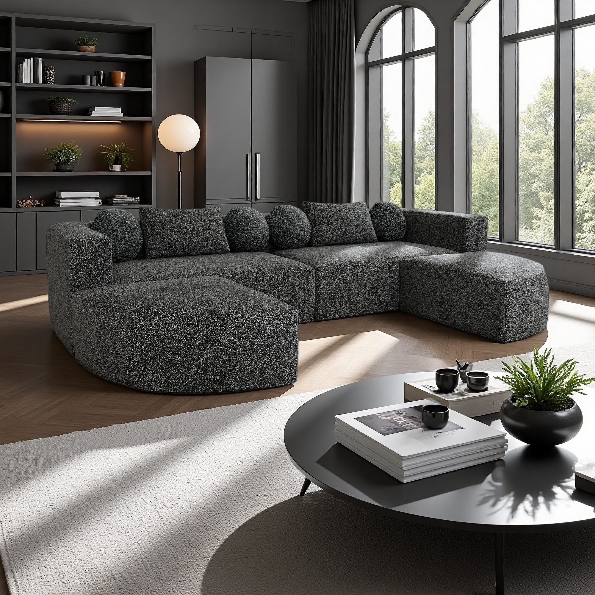 114.9" Boucle Modular 6-Seat Sectional Sofa with Curved Design and Deep Seating