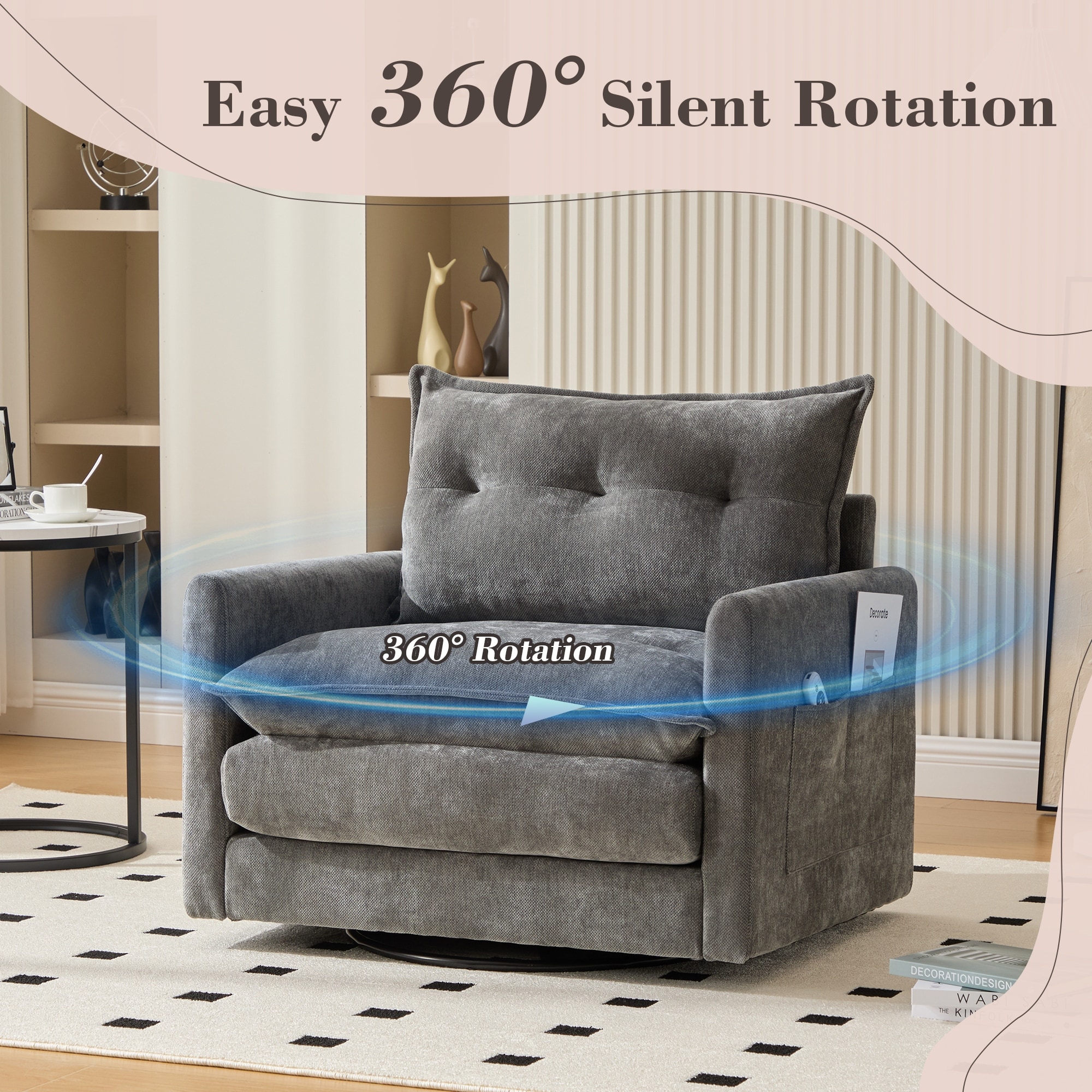 UNITED WE WIN Swivel Barrel Chair - Mid Century Modern Chair, Thick Padded Arm Chair with Solid Metal Base