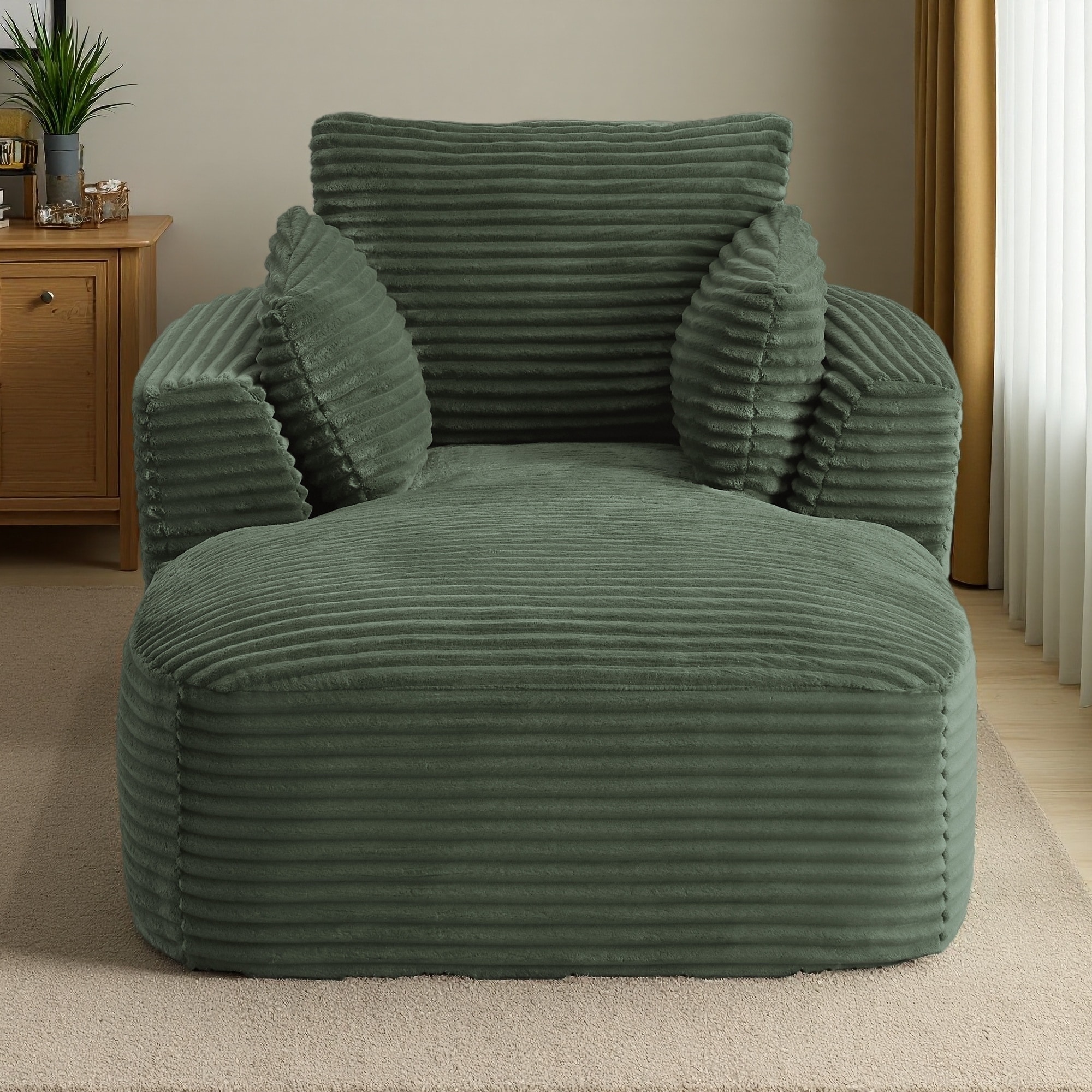 45.3" Oversized Corduroy Chaise Lounge Chair, No Assembly, Upholstered Sofa Couch with Spring Cushion, Comfy Sleeper for Dorm