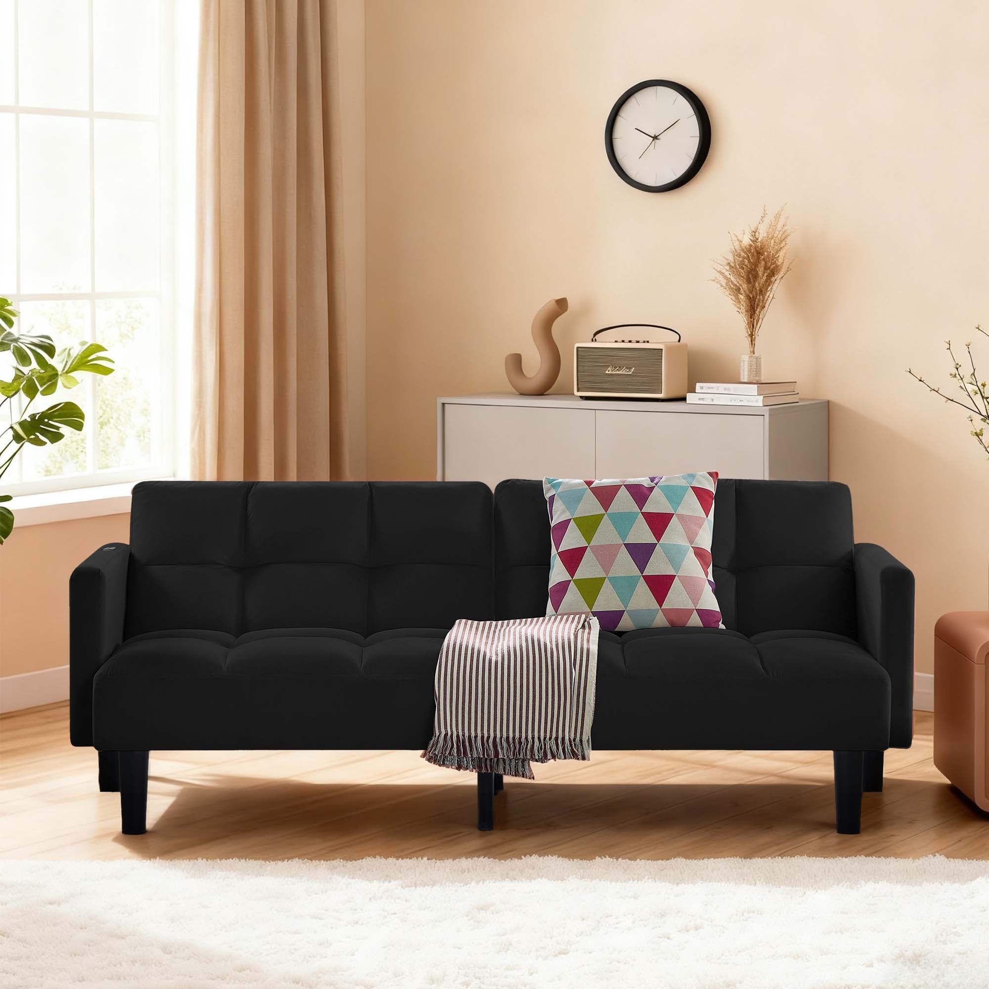 75.5" Velvet Convertible Sofa Bed Tufted Folding Couch With Usb Port Suitable For Living Room, Bedroom, Office