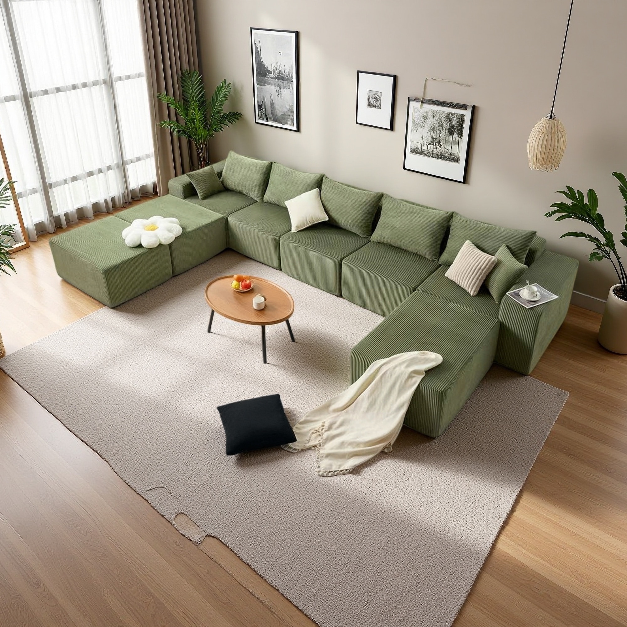 155.91" Corduroy 8-Piece U-Shaped Modular Sectional Sofa with Oversized Ottoman Included and Bed Function