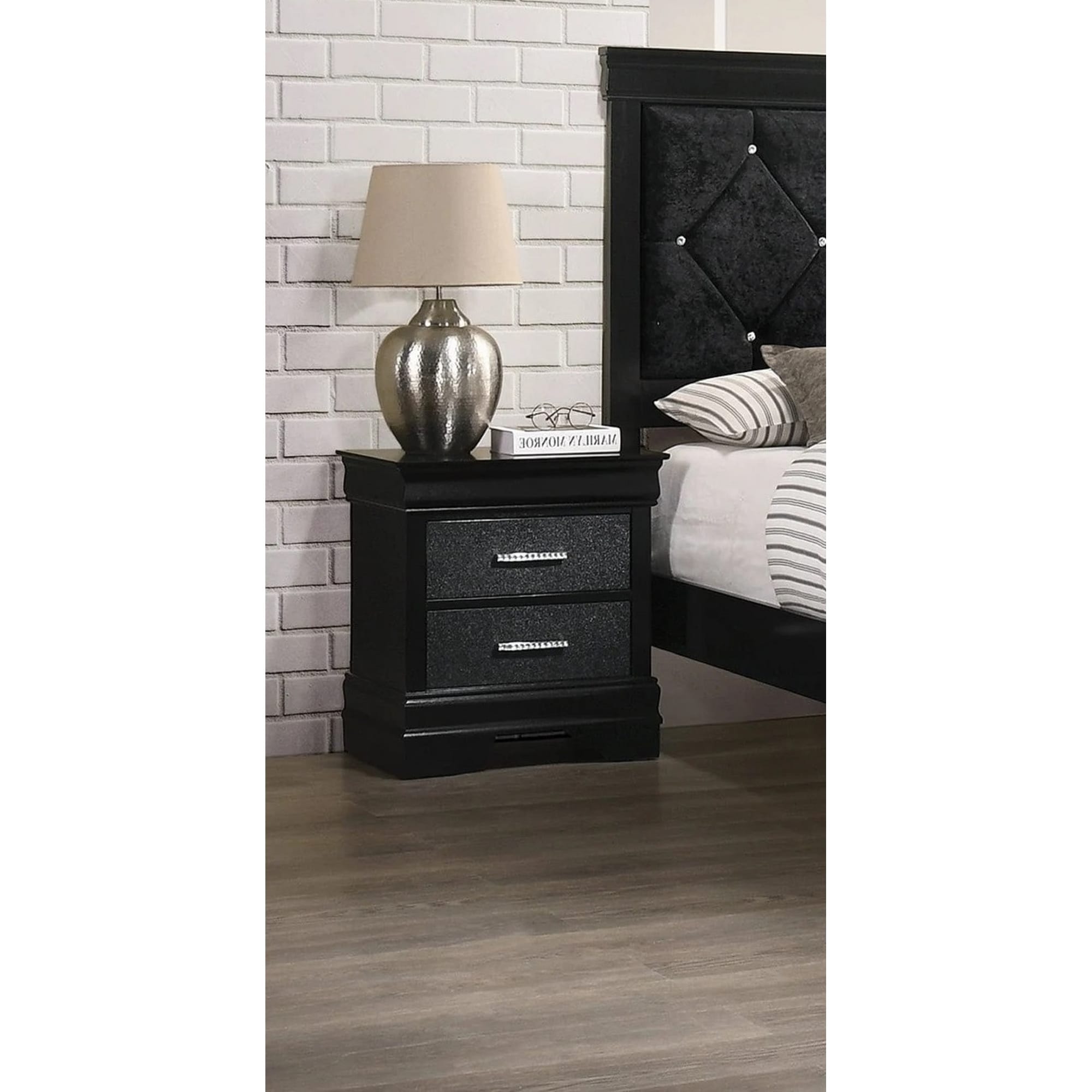 1pc modern glam style two drawers nightstand black finish solid wood crystal-like button tufted