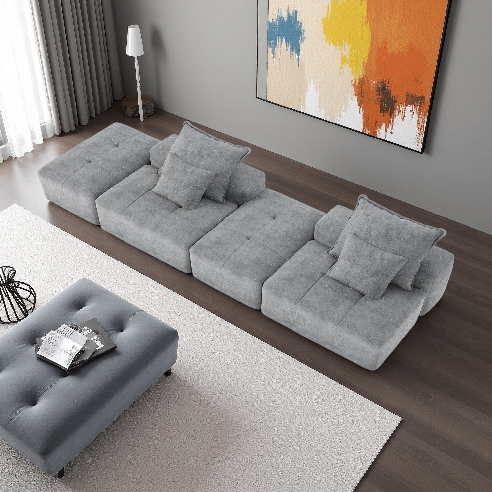141.73" Sparkling Chenille Modular Sectional Sofa with 2 Ottomans & 4 Pillows, No Assembly