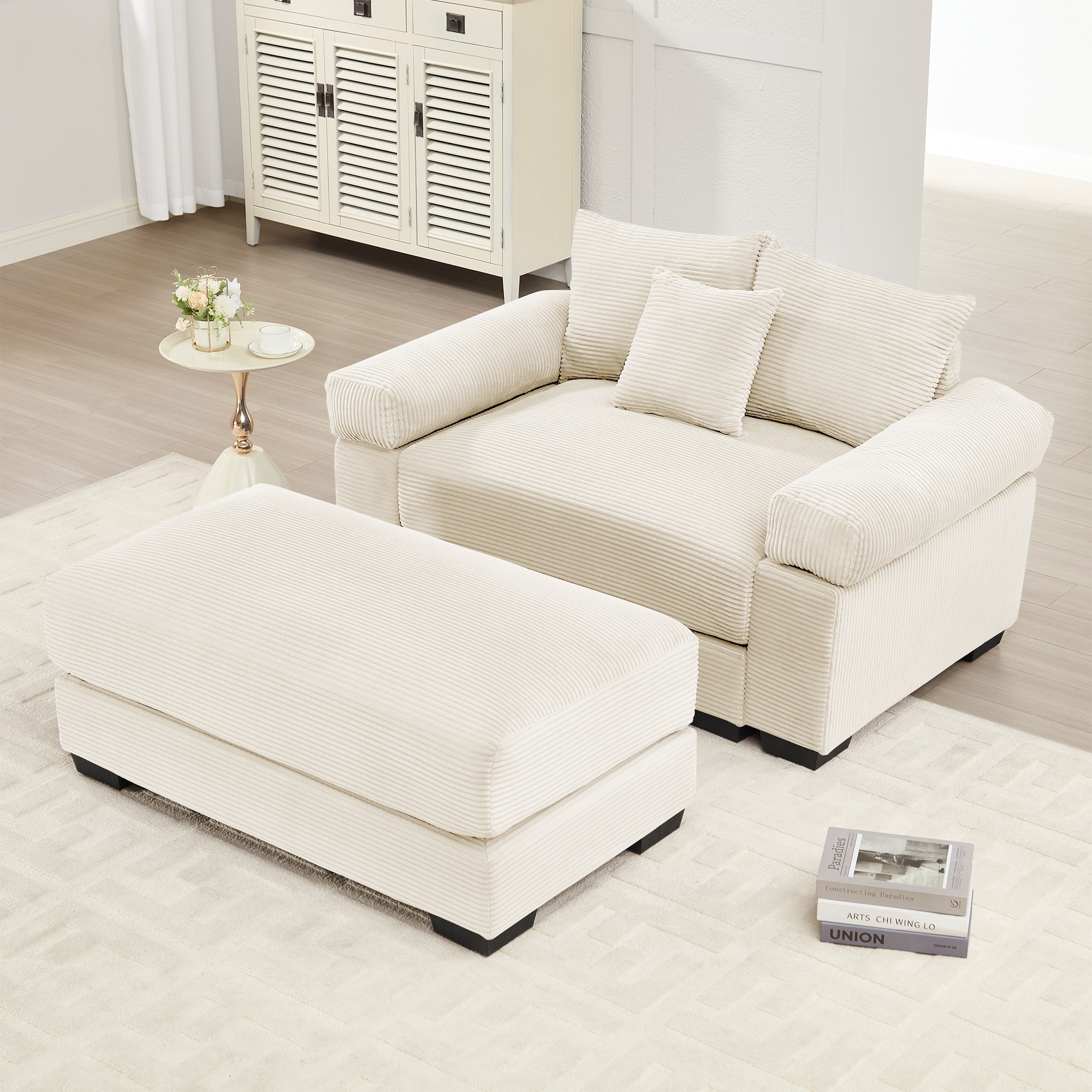 Corduroy 1-Seater Modular Sofa with Ottoman and Throw Pillows