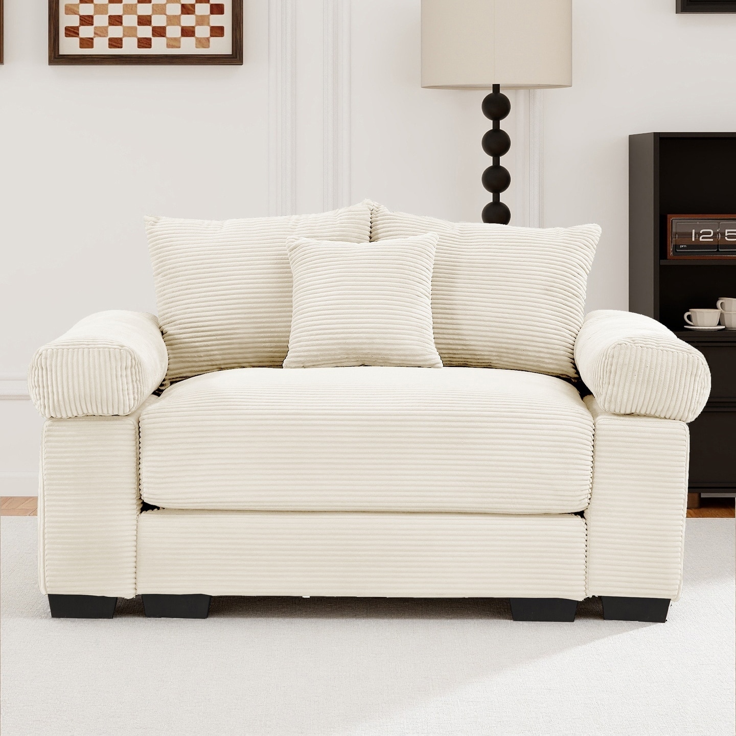 Oversized Chaise Lounge Corduroy Chair Indoor Single Sofa with Ottoman for Living Room Bedroom