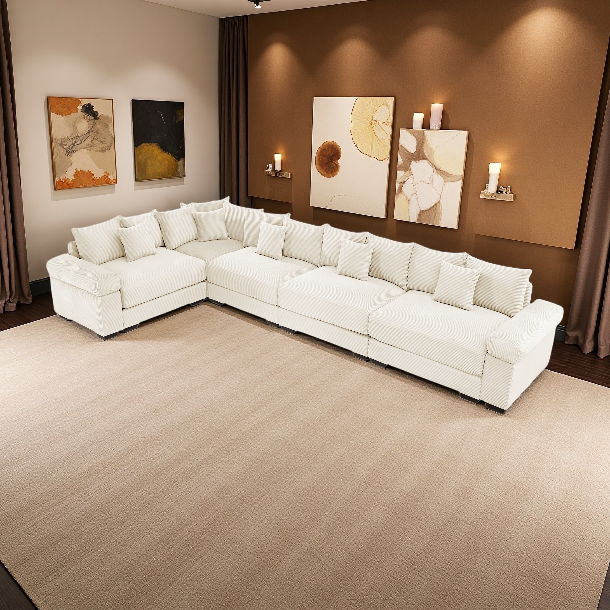 154.6" Corduroy Modular Cloud 5-Seater Sectional Sofa with 18 Pillows