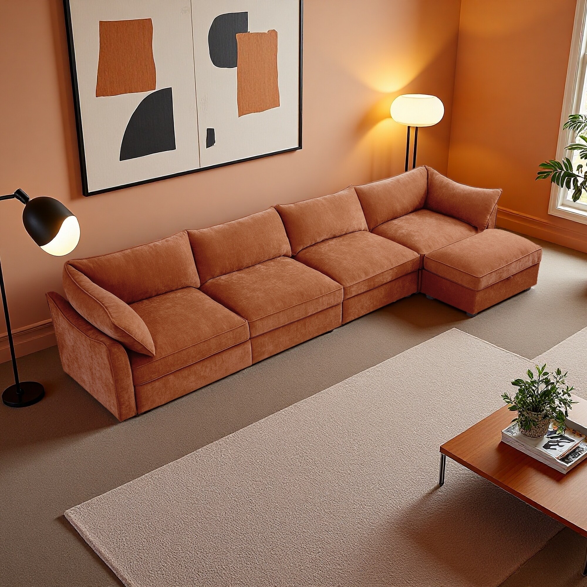 146.4" Chenille L-Shaped 4-Seater Sectional Sofa with Ottoman and Under-Seat Storage