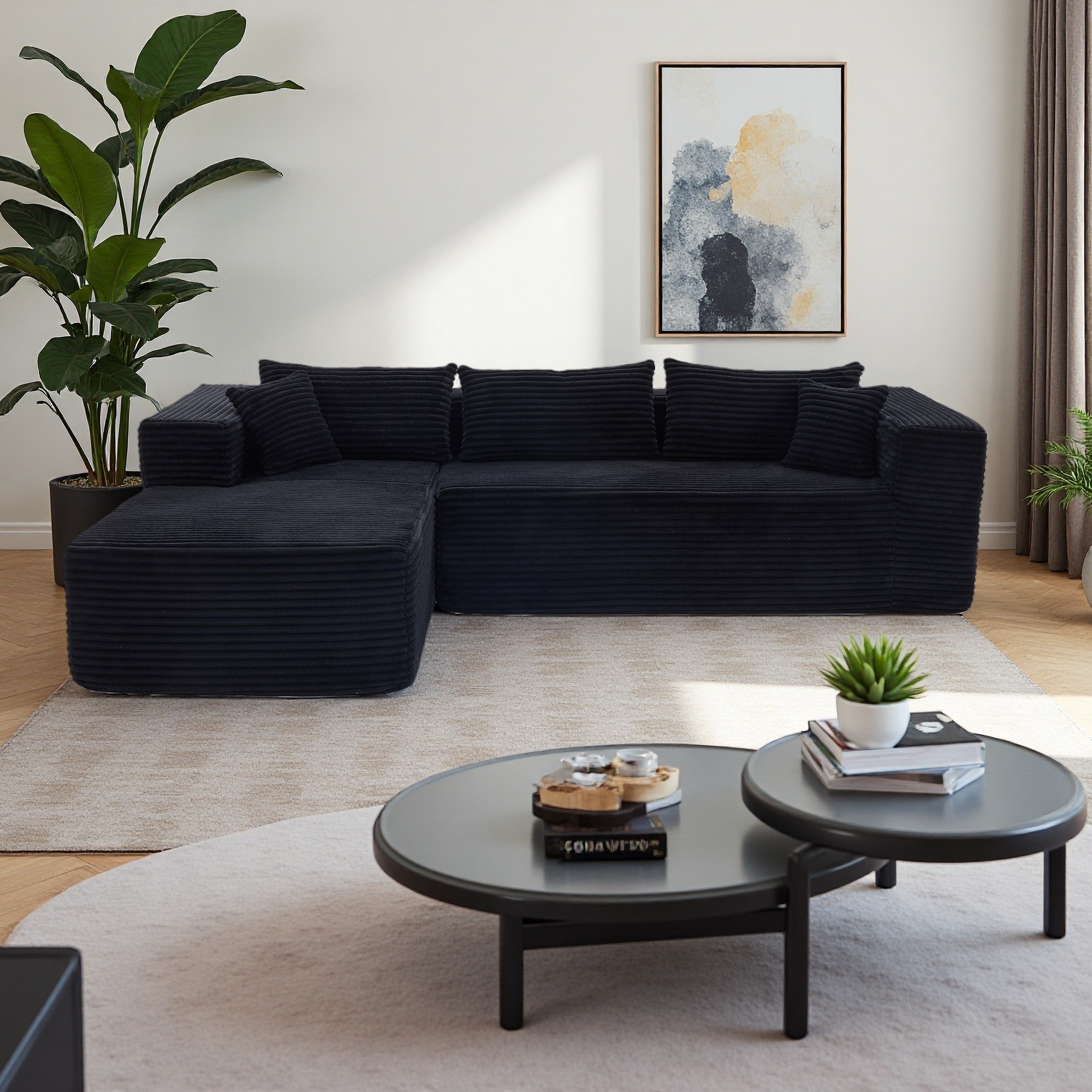 Modern Corduroy Non-Assembly L-Shaped Sectional Sofa Couch with Chaise