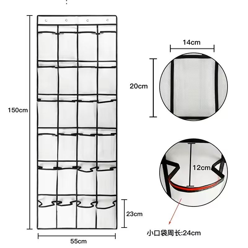 Over The Door Shoe Rack With 24 Mesh Pockets Hanging Closet Organizer Holder white
